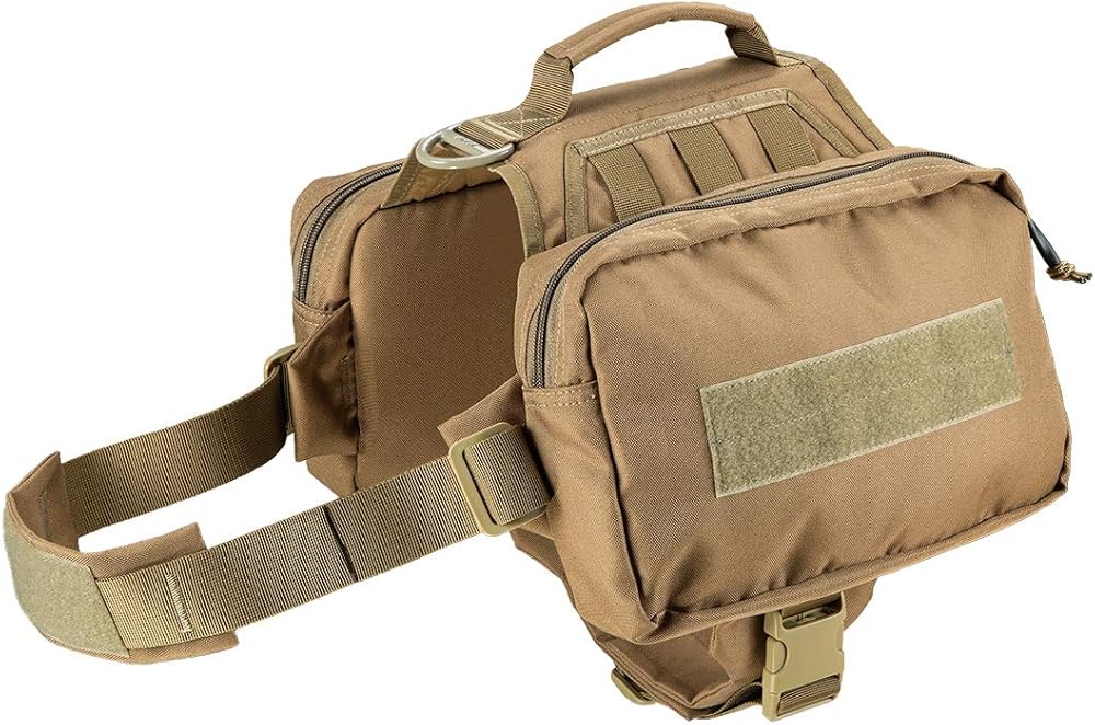 حقيبة ظهر للكلاب من JiePai، حقيبة ظهر للتنزه سيرًا على الأقدام، حقيبة سرج، حقيبة ظهر للكلاب، مع جيوب للكلاب المتوسطة والكبيرة، بني ذئب البراري