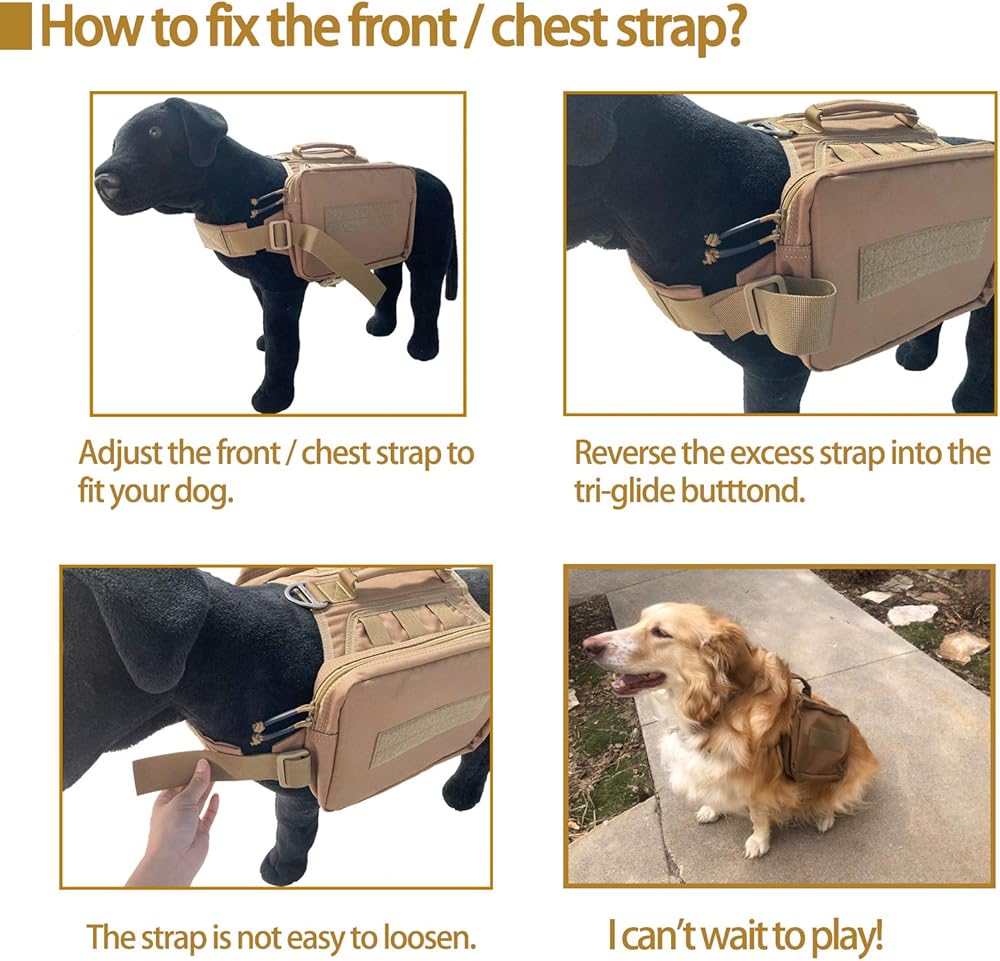 • حقيبة ظهر لسرج الكلب قابلة للتعديل - الحزام الأمامي وحزام البطن ذو الخطاف والحلقة مع أبازيم UTX-Duraflex بحيث تبقى الحقيبة في مكانها وتلتف حول رقبة الكلب وبطنه جيدًا. يمكن لنظام مولي الموجود على الجانب الخلفي إضافة المزيد من العناصر التي تريدها.