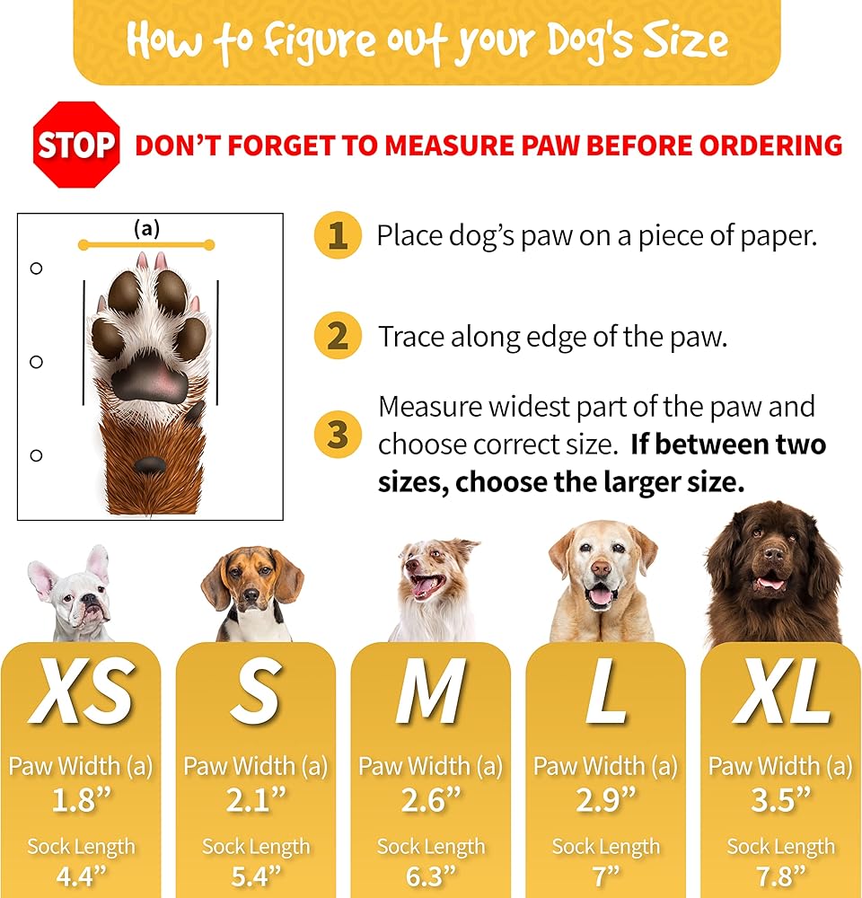 • الحجم مهم: عرض المخلب 2.9 سم للمقاس الكبير. يرجى التأكد من قياس حيوانك الأليف قبل الشراء. اختر المقاس الأكبر إذا كان عرض القدم بين مقاسين. تتضمن 4 جوارب للكلاب مصنوعة من نسيج قطني مرن يمكن أن يتمدد.