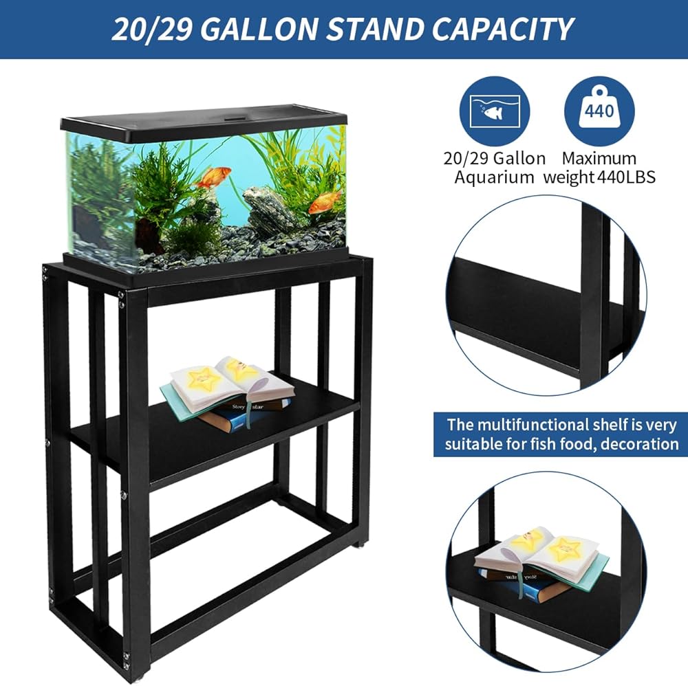 • 【20 GALLON TANK STAND】Are you looking for a sturdy and reliable fish tank stand for your aquarium? Look no further than our fish tank stand! Measuring 24.8" long, 9.25" wide, and 29.5" high, this aquarium stand is designed to accommodate aquariums up to 20 gallons in size. With a weight capacity of 660 pounds, you can rest assured that your aquarium will be safe and secure.