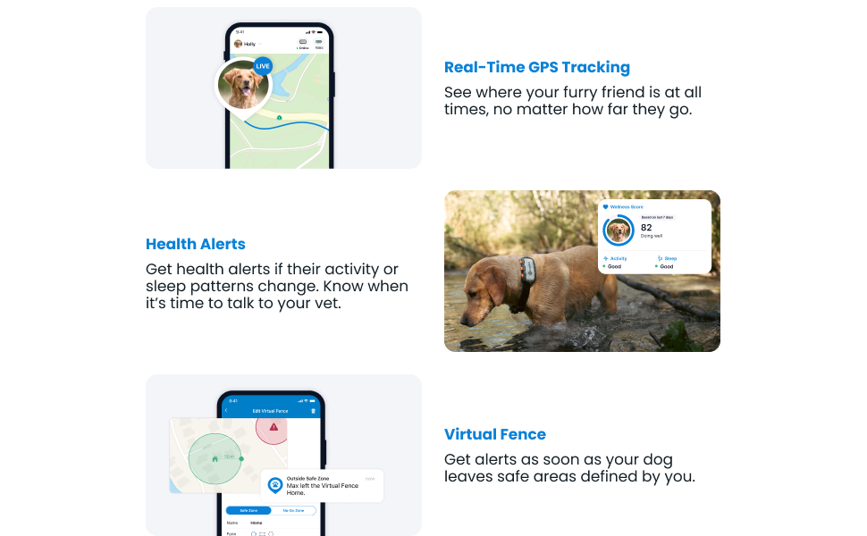 REAL-TIME GPS TRACKING: See the location of your dog and track them anywhere with no distance limit