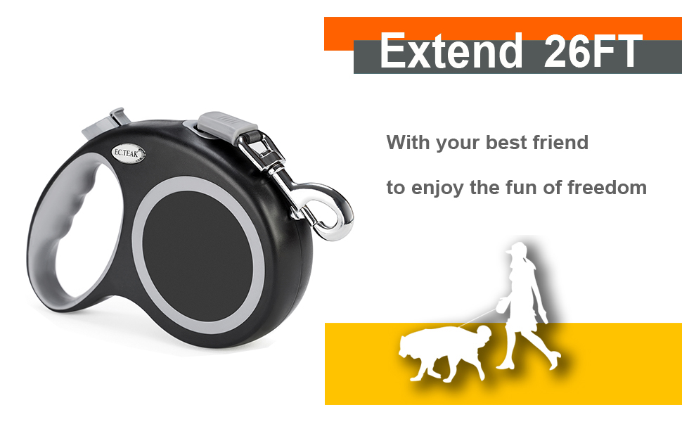 يمتد شريط النايلون القابل للسحب إلى 26 قدمًا، لأي نوع من أنواع الكلاب التي يصل وزنها إلى 110 رطل، قوي ومتين، تصميم لا يصدر ضوضاء للاستخدام اليومي، مما يمنحه أقصى قدر من الحرية أثناء سيطرتك.