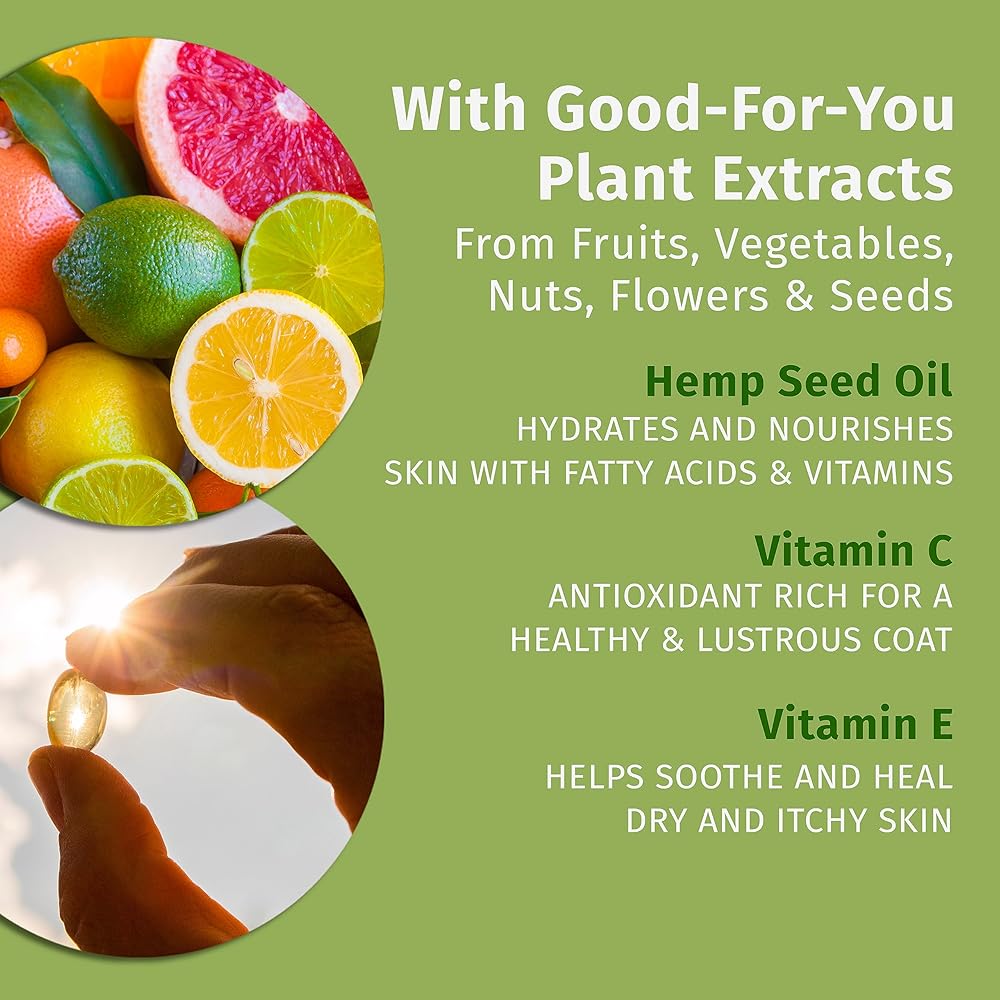 Deep nourishment – conquer your pet's dryness & calm their skin with our hemp oil formula that helps to protect against natural & environmentally triggered oxidants while also giving your dog a long lasting fresh smelling berry citrus scent