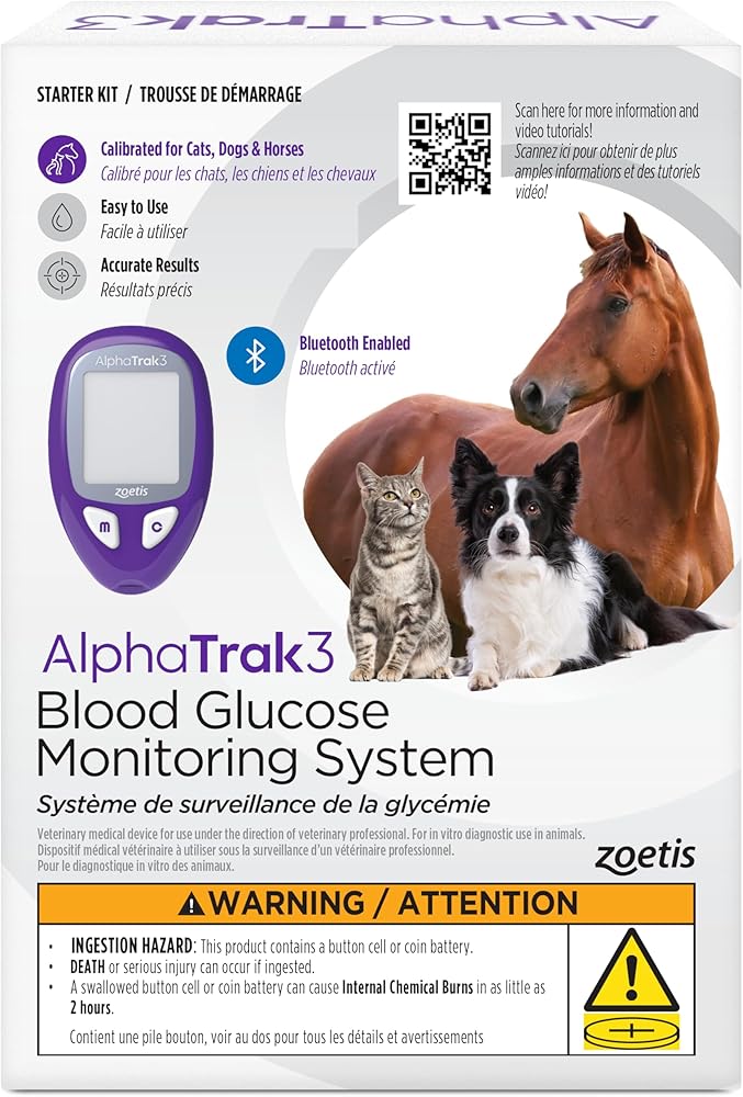 AlphaTrak 3، مجموعة أدوات مراقبة نسبة الجلوكوز في الدم للحيوانات الأليفة المكونة من 8 قطع للقطط والكلاب والخيول المصابة بداء السكري، حل الكل في واحد للاستخدام في العيادة أو في المنزل مع نتائج رقمية