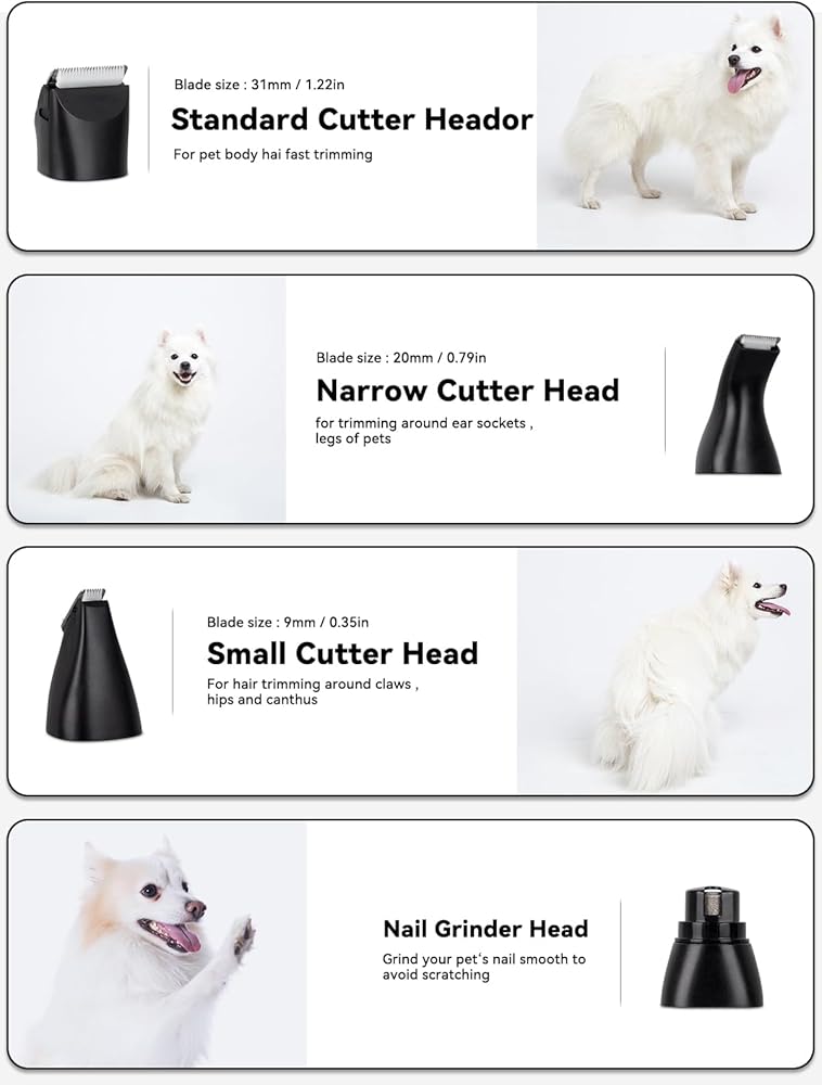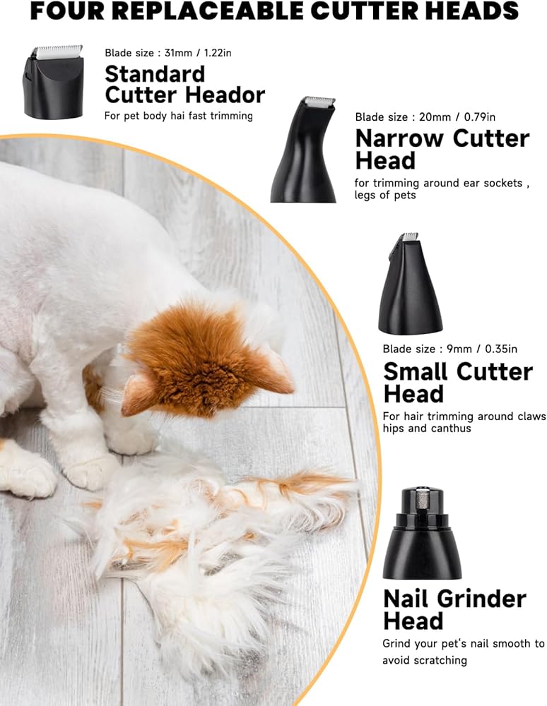 【سهلة التنظيف】: ماكينة قص الكلاب المقاومة للماء الخاصة بنا سهلة جدًا في القطع حول وسادات المخالب الصغيرة. يمكن إزالة جزء الشفرة من ماكينة قص الكلاب للتنظيف والتنظيف تحت الماء.