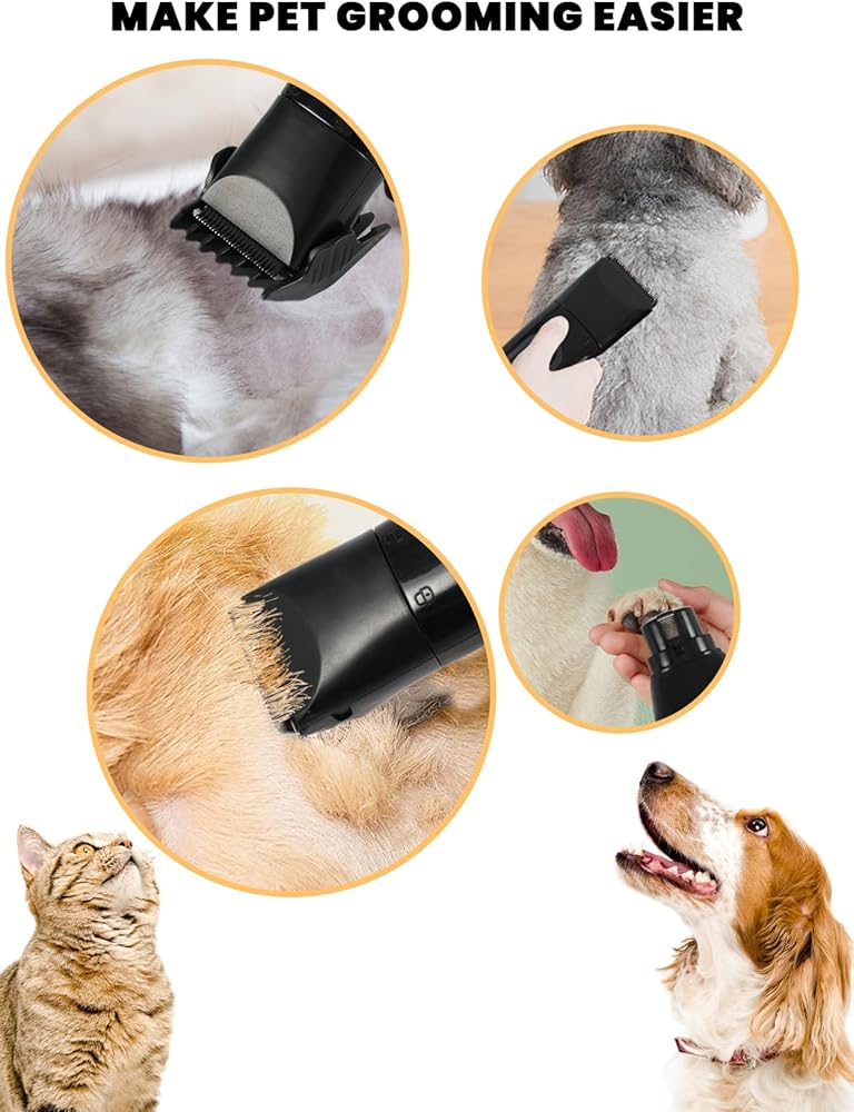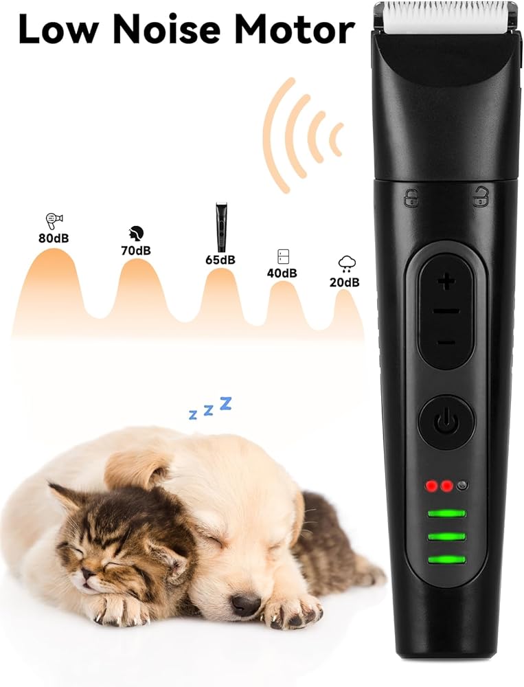 【ماكينة تشذيب شعر الكلاب منخفضة الضوضاء】تعمل ضوضاء ماكينة قص شعر الحيوانات الأليفة فائقة الهدوء لدينا بمعدل 50 ديسيبل، مما يضمن أن يشعر حيوانك الأليف بالراحة أثناء عملية الحلاقة بأكملها ولن يسبب أي إزعاج له.