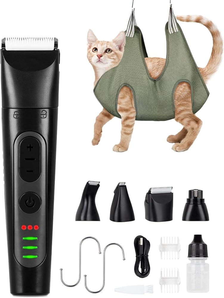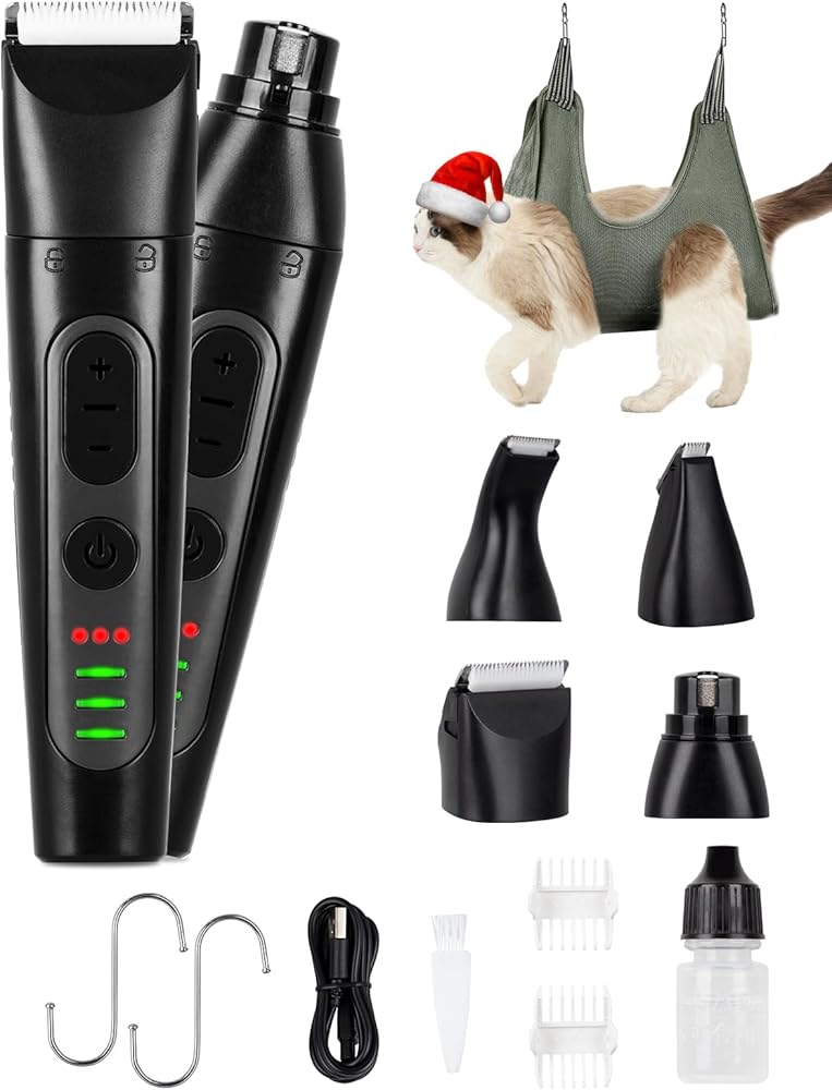 【مجموعة العناية بالحيوانات الأليفة الاحترافية】ماكينة قص شعر الكلاب من WHDPETS مجهزة بـ 4 رؤوس لتلبية الاحتياجات المختلفة. 3 شفرات تشذيب لشعر الكلاب حول الكفوف والعينين والأذنين والوجه والردف. 1 مطحنة أظافر لتلميع أظافر الكلاب. كما يأتي مع هدايا إضافية: أرجوحة للعناية بالحيوانات الأليفة. أبعاد أرجوحة الحيوانات الأليفة متوسطة الحجم هي 20.4 بوصة (طول) × 27.5 (عرض). مناسبة للقطط والكلاب المتوسطة التي يبلغ وزنها 64 رطلاً.