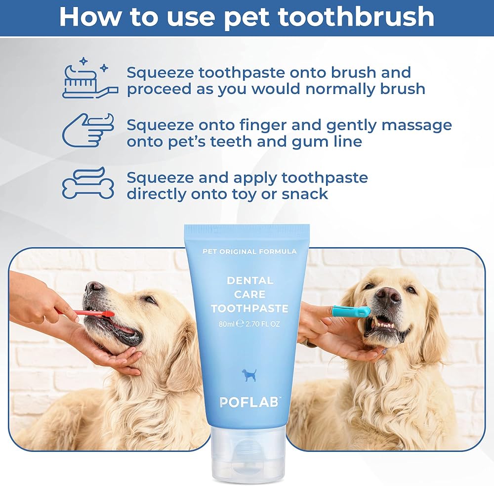سهل الاستخدام: للحصول على تجربة تنظيف تقليدية، ما عليك سوى الضغط على كمية بحجم حبة البازلاء على فرشاة الأسنان وتنظيف أسنان حيوانك الأليف كما تفعل عادةً. بدلًا من ذلك، يمكنك وضع معجون أسنان الكلاب مباشرة على لعبة أو وجبة خفيفة كوسيلة مناسبة لتعزيز صحة أسنان كلبك.
