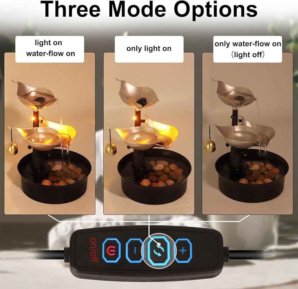 THREE DISPLAY MODES – Our indoor water fountains MODE 1, both light and flowing water, create a serene and enchanting atmosphere. MODE 2, only flowing water, experiences a soothing and extra Zen atmosphere. MODE 3, only light, indulges in visual wonders.