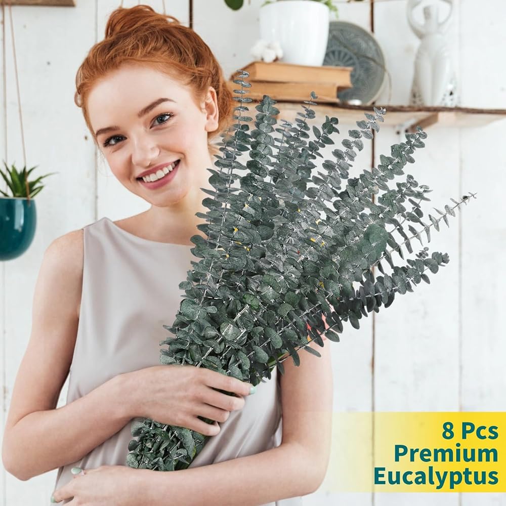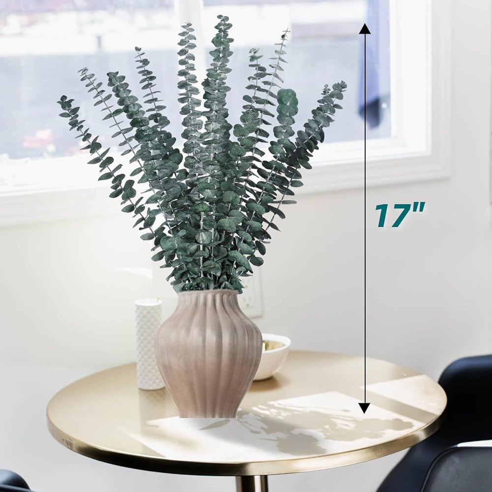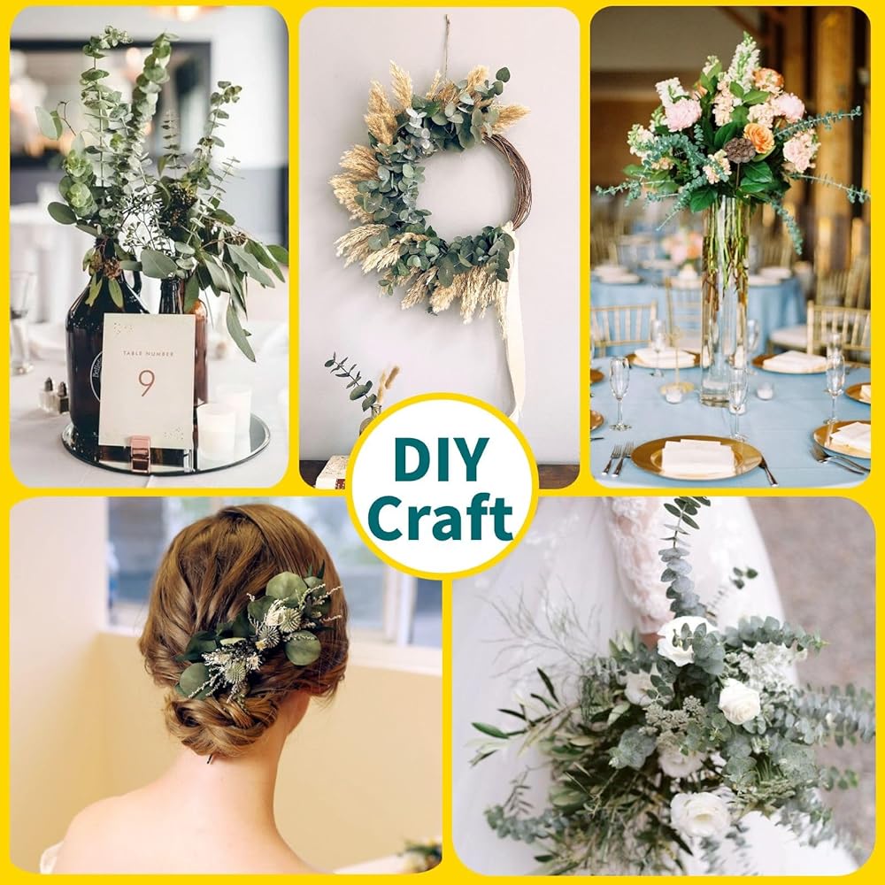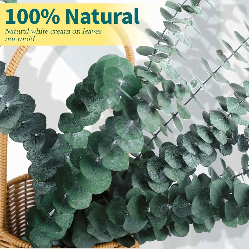 💐[مادة طبيعية] - تحتوي كل عبوة على 8 سيقان، بطول 15 انش - 17 انش. سيقان الأوكالبتوس الطبيعية بنسبة 100% من مصادر الغابات وخالية من الإضافات والمواد الكيميائية والأصباغ. تم اختياره يدويًا وتجفيفه بالهواء ومعبأ للحفاظ على اللون والمرونة. تتشكل بعض المساحيق البيضاء بشكل طبيعي على الأوكالبتوس المحفوظ، ويمكن مسحها بسهولة إذا رغبت في ذلك.