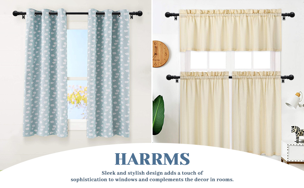 قضبان الستارة الحديثة: يتميز قضيب الستارة بلمسة نهائية دائرية كلاسيكية حديثة على كلا الطرفين ولمسة نهائية ريفية، مما يوفر مظهرًا فريدًا وأنيقًا بصريًا يجعل مساحة معيشتك أكثر أناقة. كما أنه يتطابق بسهولة مع مجموعة متنوعة من أنماط المنزل.