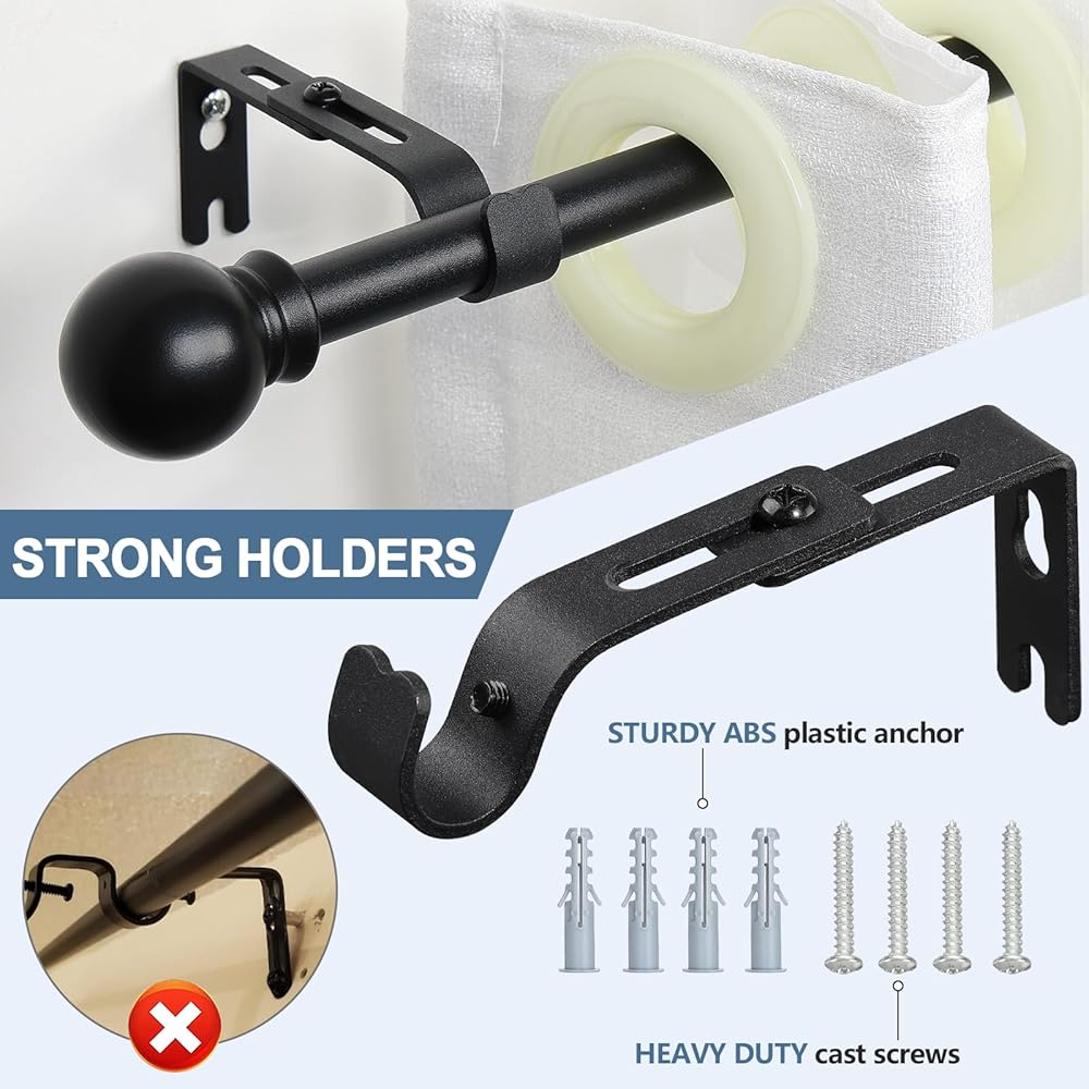 سهلة التركيب: مجموعة قضبان الستارة الصغيرة مقاس 5/8 بوصة تأتي مع جميع أدوات التثبيت، والأقواس، والمسامير، وأدوات تثبيت الحائط، وتعليمات لسهولة التركيب في دقائق.