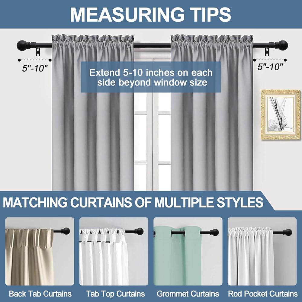 تناسب معظم الستائر: قضبان الستارة المعتمة مثالية للحلقة المعدنية والعروة الخلفية وجيب القضيب والستائر العلوية. مثالية لغرفة المعيشة، المطبخ، غرفة النوم، غرفة الطعام، بيت المزرعة، الباب المنزلق، الفناء الخارجي.