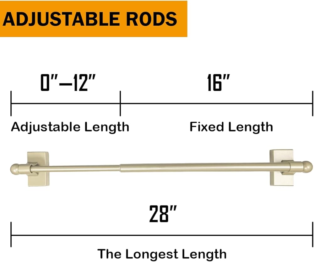 خيارات متعددة ---- متوفر بمقاسين، يمكن تعديل القضبان من 9 بوصات إلى 16 بوصة، ومن 16 إلى 28 بوصة. يتوفر لونان عصريان: الشمبانيا والأسود والأبيض والكاكاو. اختر الأفضل الذي تريده! زين منزلك ويجعله أكثر جمالا.