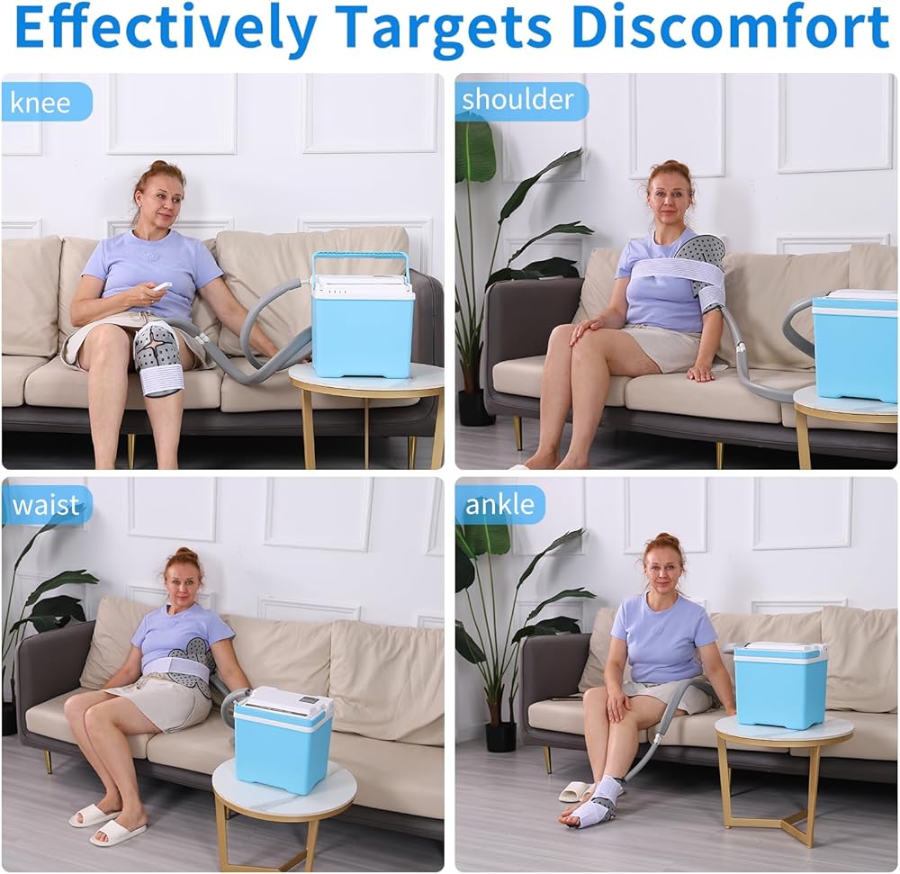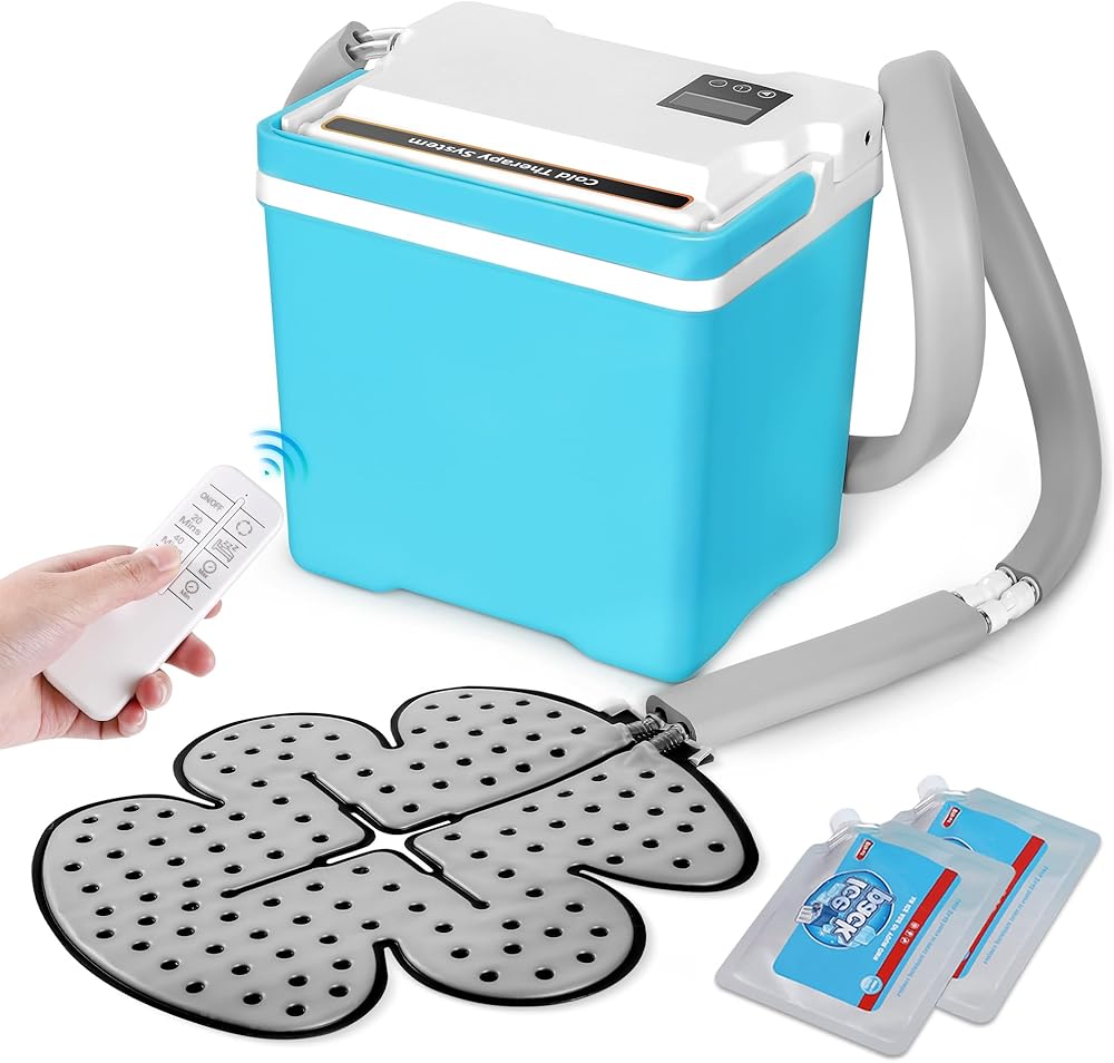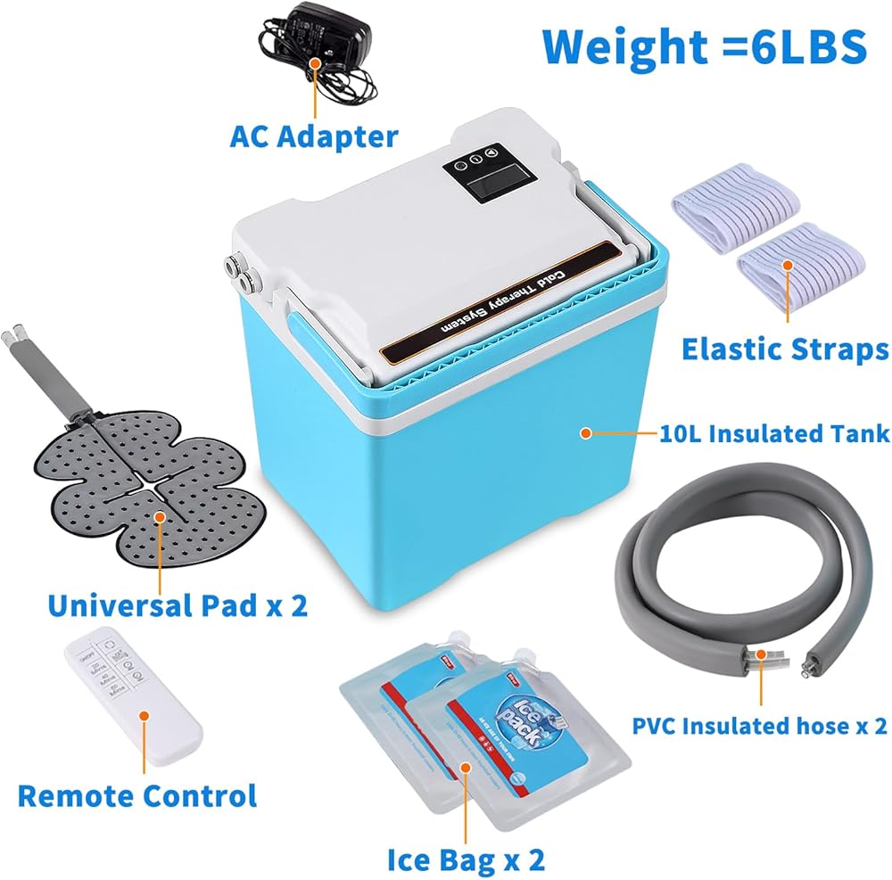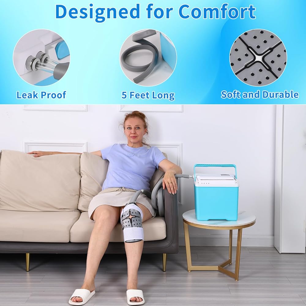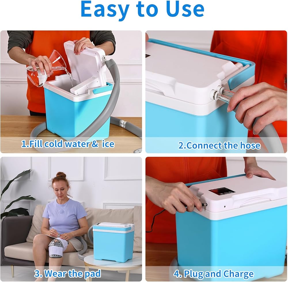 • سهل الاستخدام وخفيف الوزن: ما عليك سوى ملء الخزان بأكياس ثلج وماء قابلة لإعادة الاستخدام، وتوصيل الخراطيم، وتشغيل الوحدة ولف الوسادة حول ركبتك، ثم يبدأ الماء البارد في الدوران لتخفيف الألم. الآلة نفسها مدمجة للغاية، وتزن 6 أرطال، وكل شيء يتناسب مع مبرد بحجم مبرد الغداء، ويلتف الخرطوم الذي يبلغ طوله 1.5 متر بسهولة حول الوحدة للتخزين عندما لا تكون قيد الاستخدام.