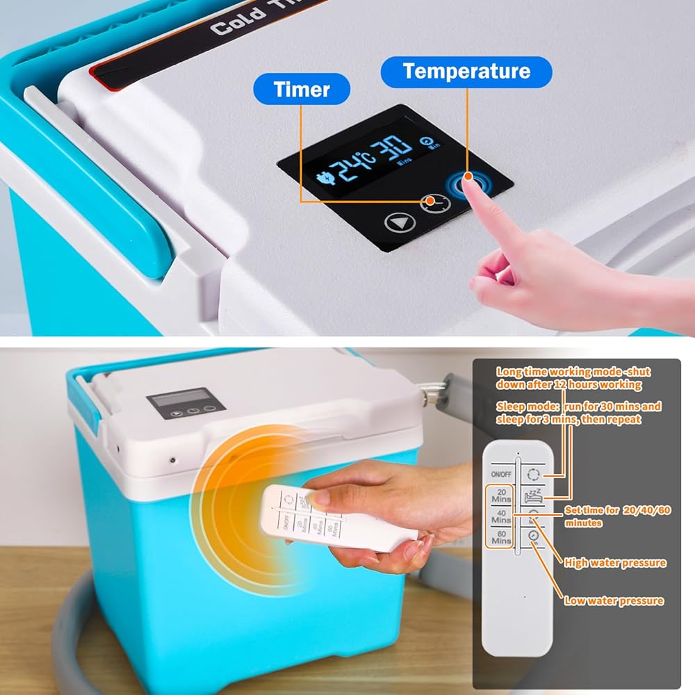 • مؤقت/تحكم في إزالة الشعر/أقصى قدر من الراحة: خزان التبريد الخاص بنا مجهز بجهاز تحكم عن بعد، مما يسمح لك من مسافة تصل إلى 15 مترًا لضبط 1) دورات العلاج/الإيقاف، 2) مؤقت لمدة 20 أو 40 أو 60 دقيقة، 3 ) التحكم في تدفق المياه (منخفض، مرتفع)، 4) وضع السكون. يمكنك ضبط الوقت المحدد للمدة التي تريد أن يستمر فيها التبريد، والمدة التي تريد الانتظار فيها بين جلسات التبريد. باستخدام لوحة رقمية، يمكنك مراقبة درجة حرارتك العلاجية وضبط الإيقاف التلقائي