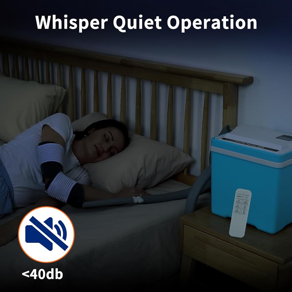 • صامت ومضاد للتسرب: تتميز آلة العلاج البارد هذه بمضخة هادئة تهمس، وهي قوية بما يكفي لتوفير برودة وضغط مستمرين، ولكنها هادئة بما يكفي لسماع قطرة الدبوس. لا تقلق أبدًا بشأن المخاوف المتعلقة بالسلامة عند النوم أثناء تشغيل الوحدة. الوحدة نفسها، والوسادة، والأنبوب المعزول كلها مصنوعة بشكل جيد من مواد مركبة متينة مع طبقات معززة، والوصلات صلبة وقوية. لا داعي للقلق بشأن مخاوف التسرب
