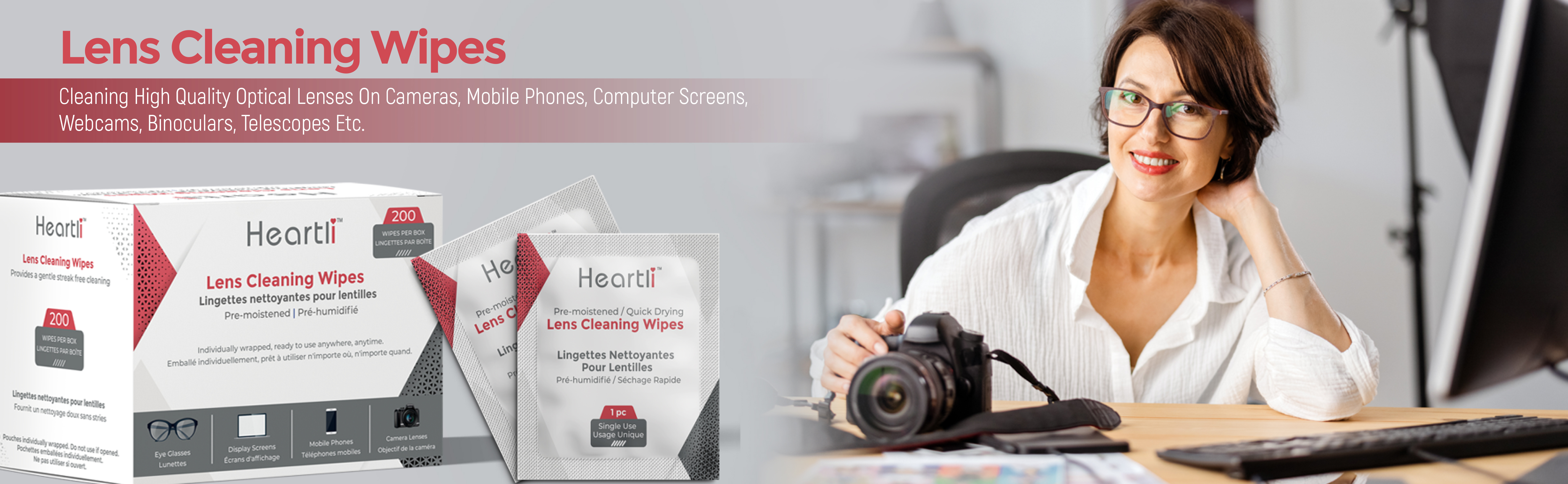 محتوى رطوبة مثالي - كمية مثالية من الرطوبة لضمان لمسة نهائية خالية من الخطوط. لا حاجة لتجفيف العدسات بقطعة قماش من الألياف الدقيقة بعد الاستخدام مثل مناديل تنظيف العدسات الأخرى المتوفرة في السوق.