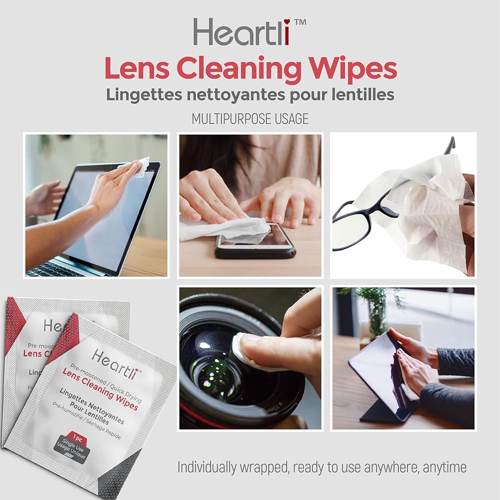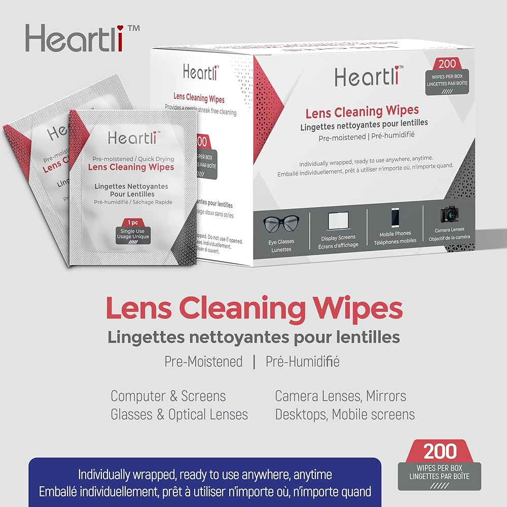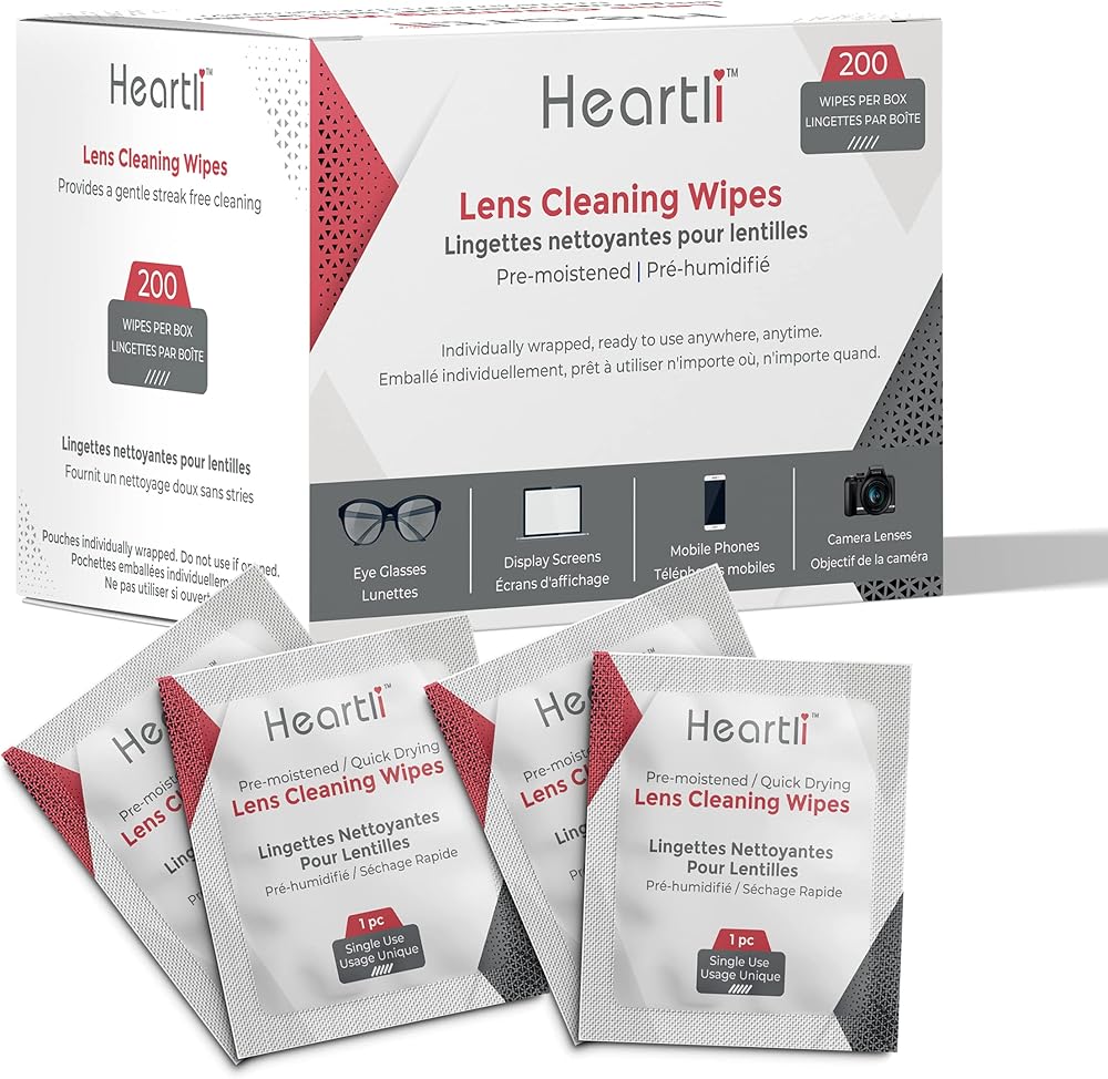 مناديل تنظيف العدسات الفاخرة المرطبة مسبقًا من هارتلي، سريعة الجفاف، مغلفة بشكل فردي لنظارات العين والشاشات وعدسات الكاميرا - تنظف، وتطهر، وخالية من الخطوط، وخالية من الوبر، ومناديل غير قابلة للخدش (200)