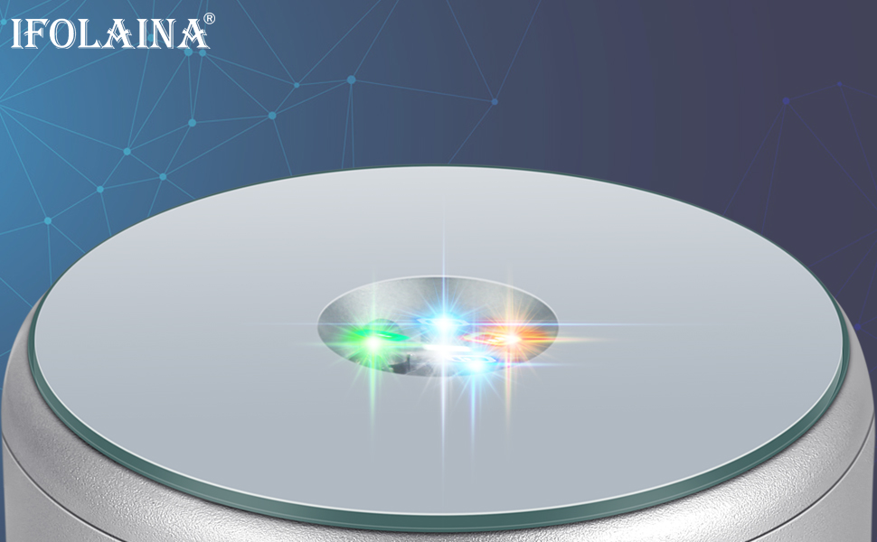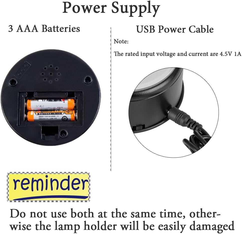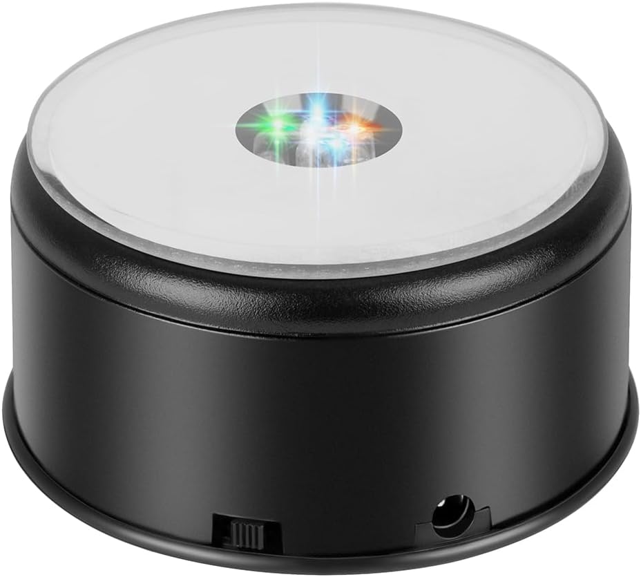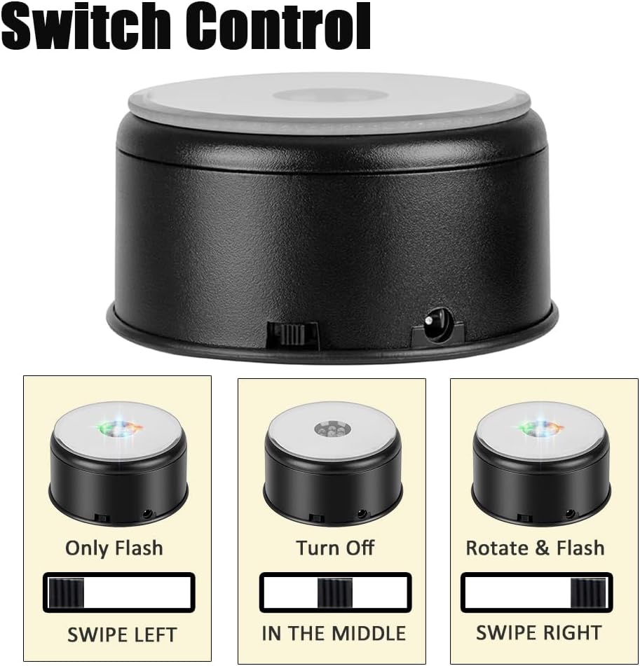 التحكم في الدوران: أدر المفتاح إلى اليمين، وستبدأ القاعدة في الدوران، وسيعمل ضوء LED ويتغير الألوان تلقائيًا. أدر المفتاح إلى اليسار، ولن تدور القاعدة، ولكن سيتم تشغيل ضوء LED وتغيير الألوان تلقائيًا، وأدر المفتاح إلى المنتصف وسيتم إيقاف تشغيله