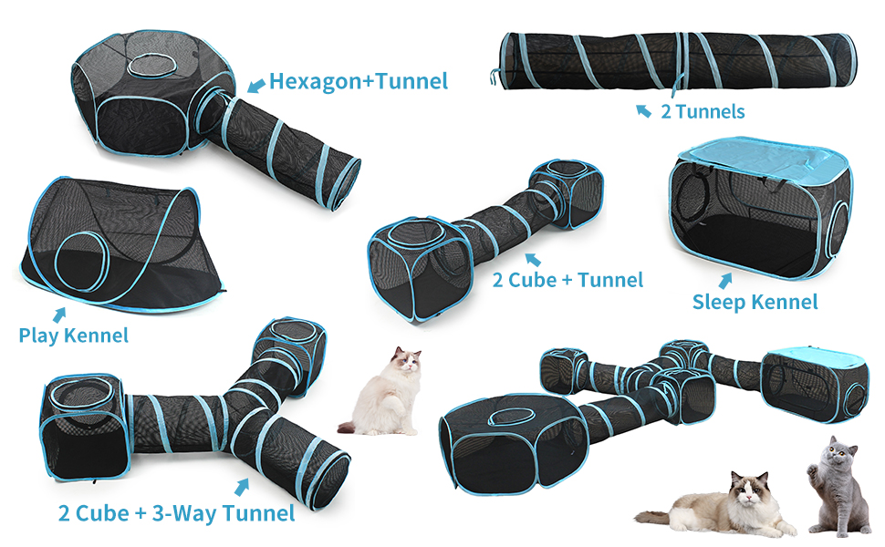 • نسيج شبكي مرئي: تصميم نفق مغلق بالكامل. يمكن إغلاق المكعب والنفق بالكامل للاستخدام، سواء في الداخل أو الخارج، يمكنك الاستمتاع بلعب قطتك! كما أن الشبكة متينة بما يكفي لتحمل الألعاب القوية.