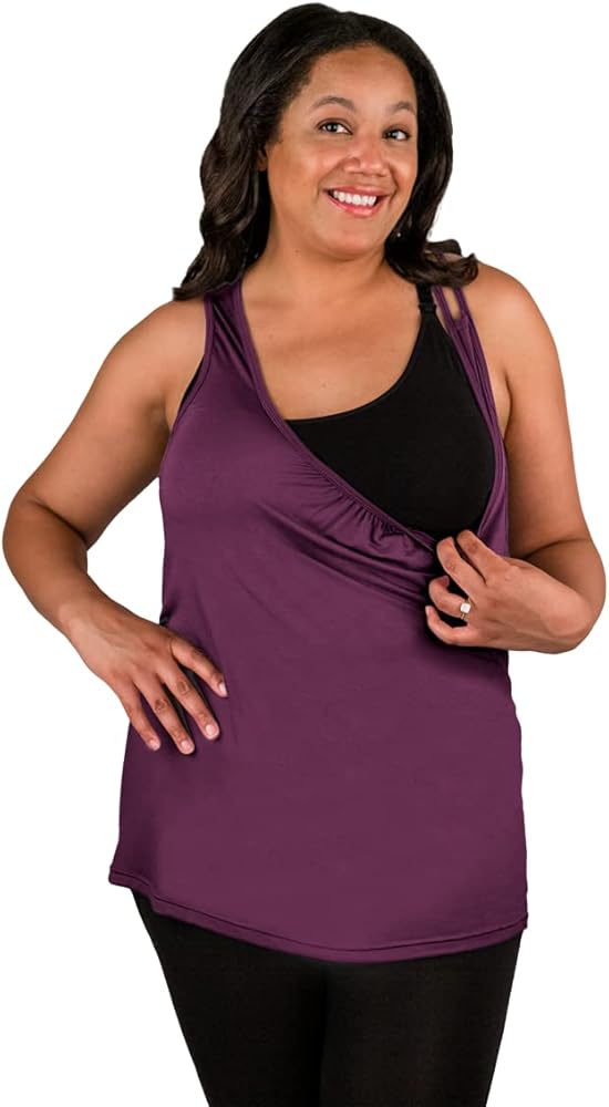 Made from the ultra-soft rayon made from rayon viscose fabric moms know and love, bamboobies Easy Access Yoga Tank is a new mom wardrobe essential. No bulky nursing clips or exposed skin, simply pull the fabric across for easy access breastfeeding. With a strappy back and loose fit, this tank is stylish, versatile and adaptable to your changing body. Plus - the thick straps conceal the nursing clips from your bra. Wear it out and about with your favorite jeans or lounging around in yoga pants. Pair with bamboobies Yoga Nursing Bra and bamboobies Washable Nursing Pads for ultimate comfort and protection from leaks.