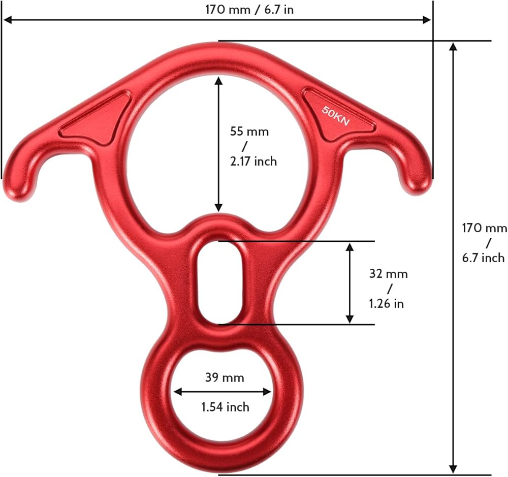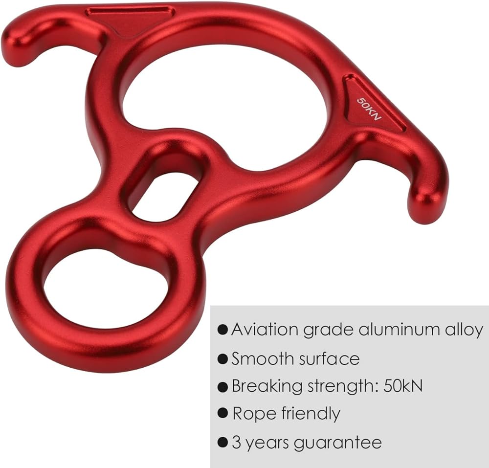 Premium material. Made from hot forged 7075 aviation grade aluminum alloy, the figure 8 descender features sturdy and robust. Breaking strength: 50kN / 11240lbf.