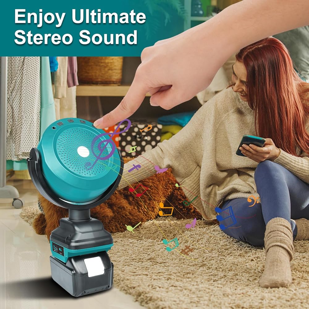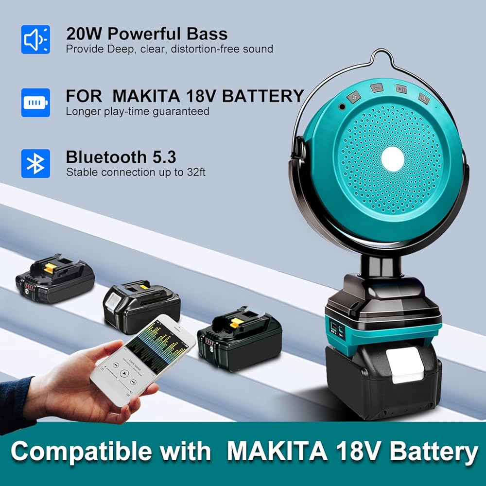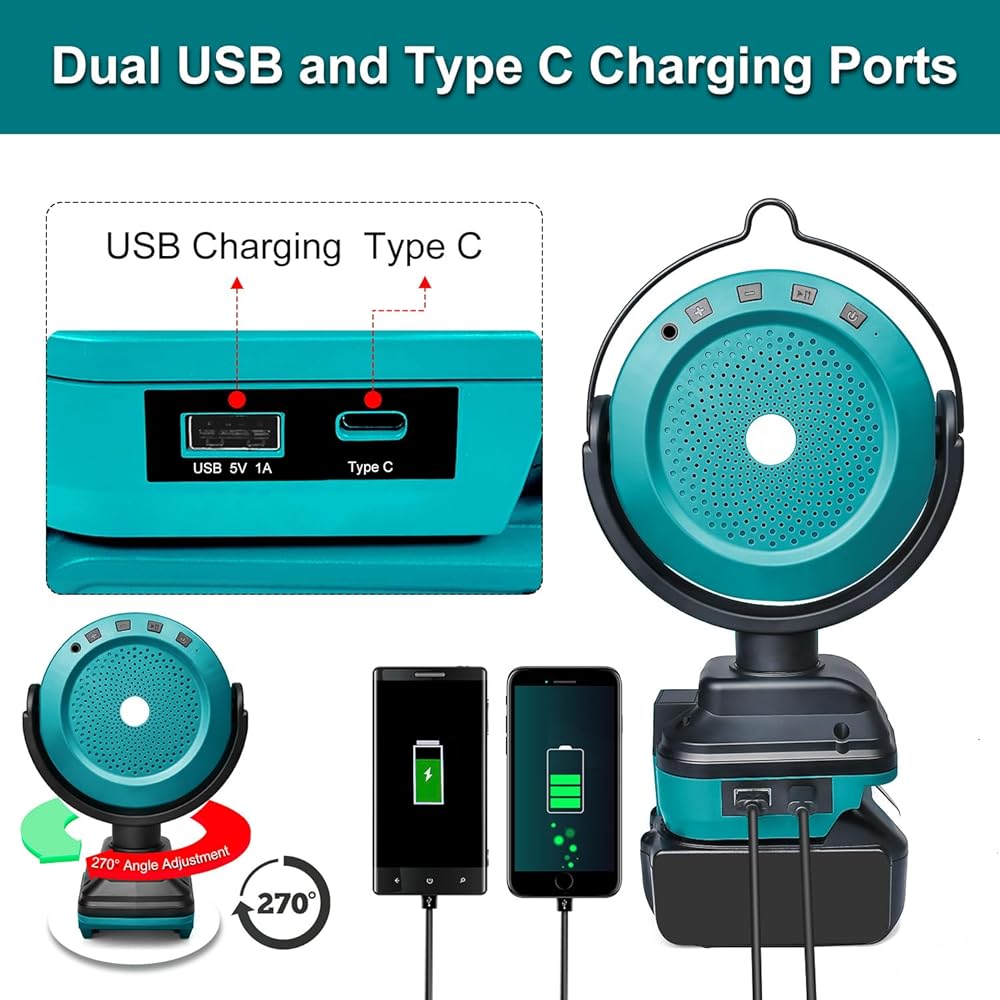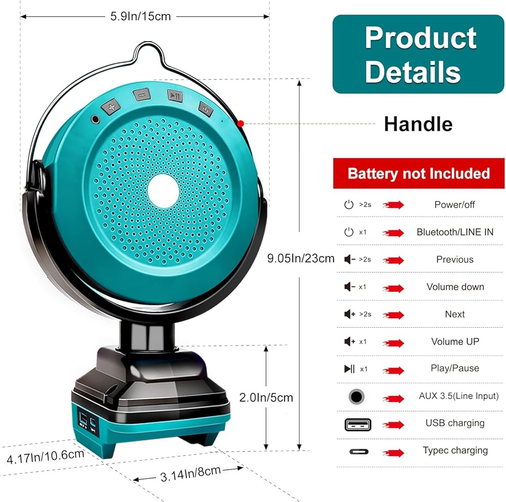 مكبر صوت بلوتوث لبطارية ماكيتا 18 فولت، مكبر صوت بلوتوث محمول مع نوع C وشحن USB لموقع العمل والتخييم وحفلات المهرجانات (بدون بطارية)