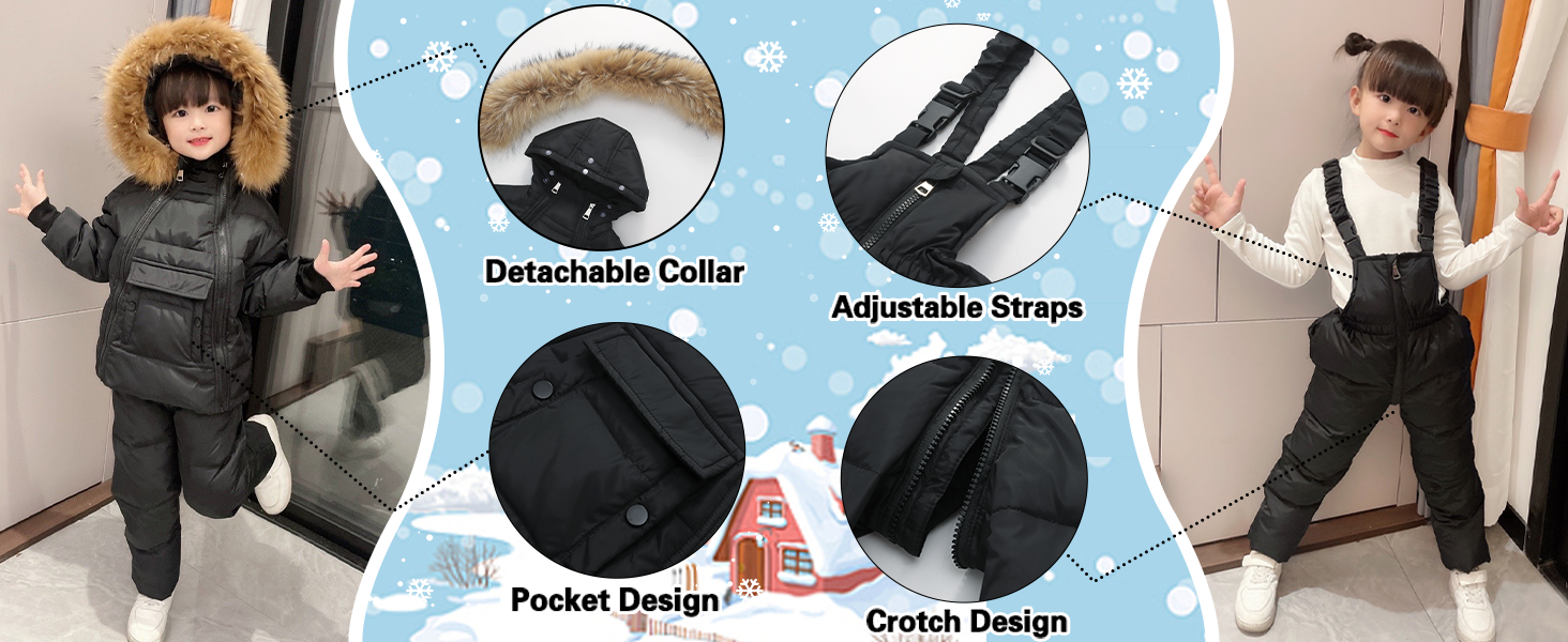 🔥【أفضل هدية شتوية】 بدلة التزلج الشتوية الدافئة المكونة من قطعتين مناسبة للخروج اليومي، والسفر، والحفلات، والتزلج، وكرة الثلج، والتزلج على الجليد، والتقاط الصور، والاستحمام. تعتبر سراويل الثلج للأطفال الصغار هدية رائعة للأيام الكبيرة مثل الحفلات، وأعياد الميلاد، وعيد الأطفال، وعيد الشكر، والهالوين، والكريسماس ورأس السنة الجديدة.
