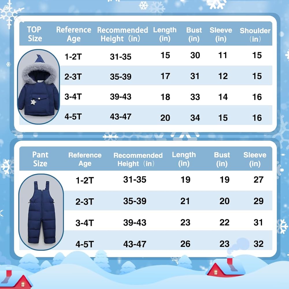 🔥【نصائح للمقاس والغسيل】مناسبة للأطفال الصغار من سن 1-2T، 2-3T، 3-4T، 4-5T. مقاس محدد يشير إلى جدول المقاسات الخاص بنا. خيارات ألوان متعددة تضمن لك اختيار مجموعة بدلة الثلج المرضية. سوف يقع طفلك الصغير في حب التصميم اللطيف. نصائح الغسيل: مادة سفلية، غسيل يدوي فقط، لا تستخدم المبيضات.
