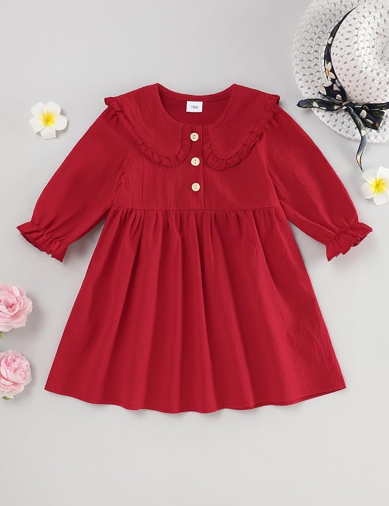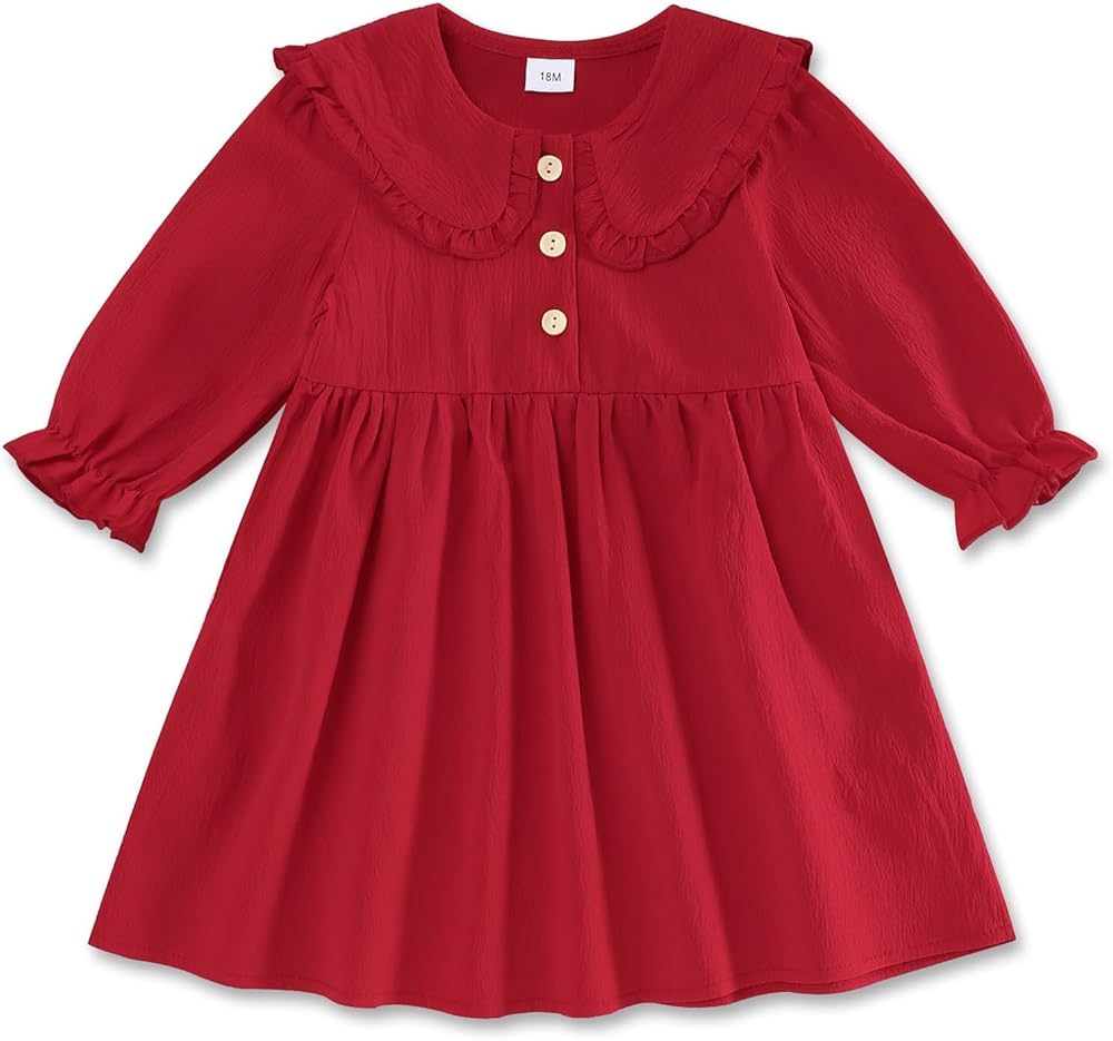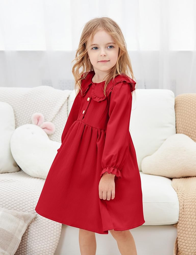 فساتين للفتيات الصغيرات فستان مكشكش بأكمام طويلة فستان الخريف للأطفال الصغار
