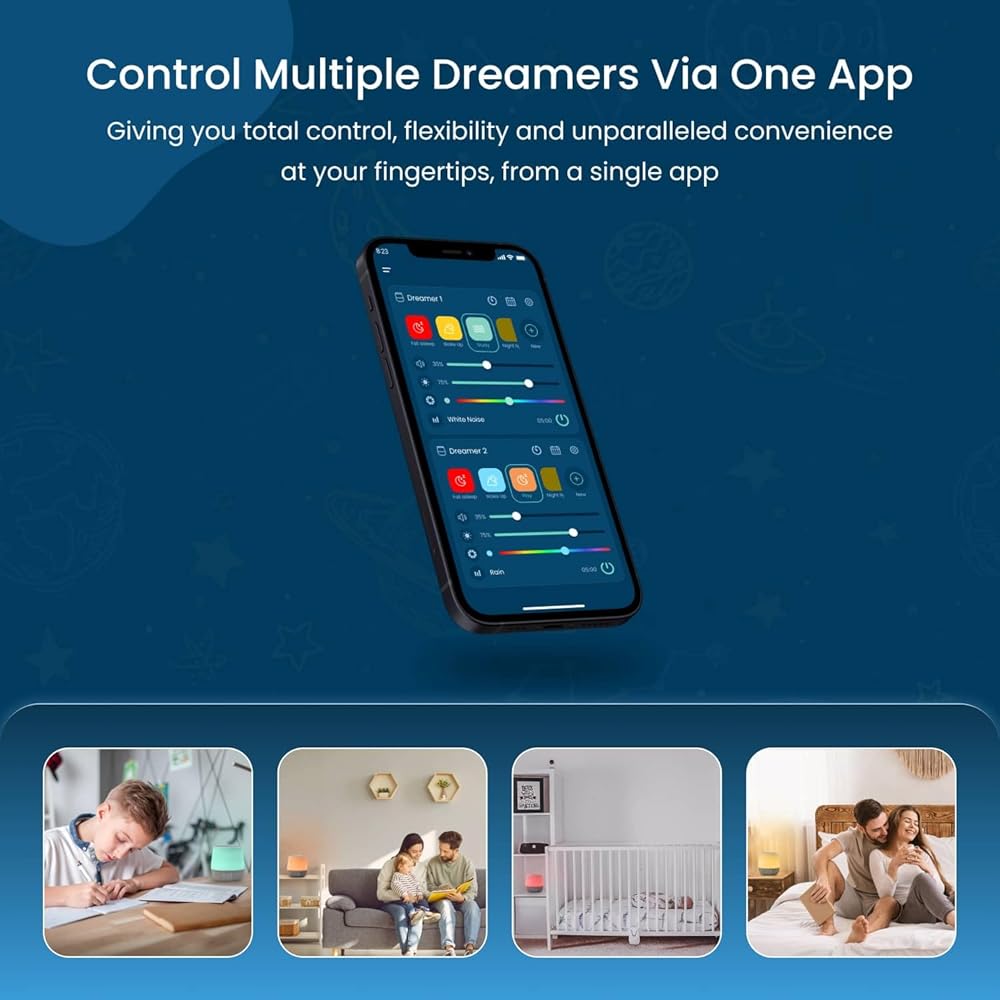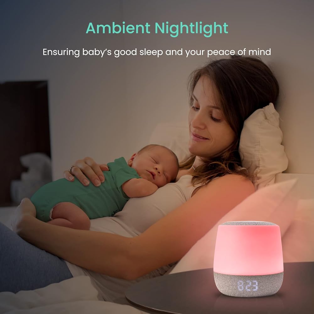 إضاءة ليلية محيطة مع 16 مليون لون RGB ومستويات سطوع قابلة للتعديل - تضمن نوم الطفل الجيد وراحة بالك.