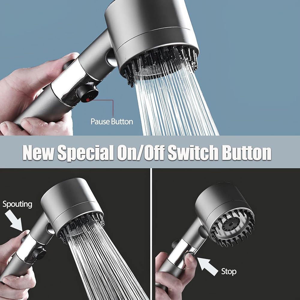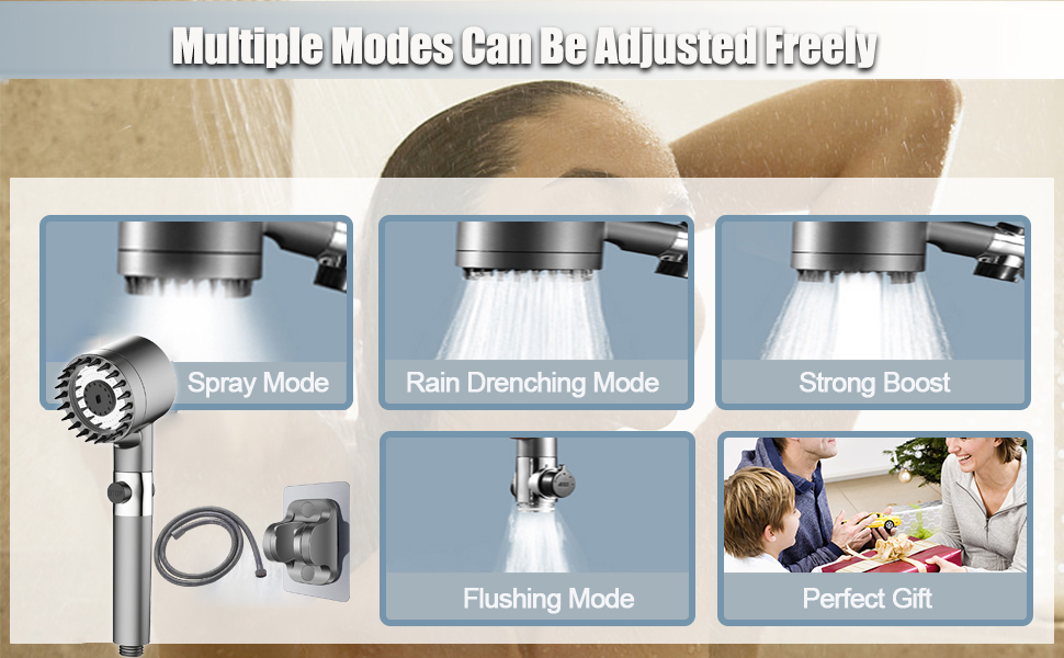 【أوضاع رش عملية بـ 4 وظائف】رأس دش قابل للإزالة مع خرطوم مع تصميم محمول فقط مع أوضاع منافذ المياه الأربعة الأكثر عملية، بما في ذلك وضع هطول الأمطار لكامل الجسم، ووضع التركيز على الطاقة، ووضع التدليك المريح ووضع الإيقاف المؤقت لتوفير المياه. والتي يمكن أن تلبي جميع متطلبات الاستخدام، دون الحاجة إلى تعيين أوضاع زائدة عن الحاجة لجعل عملية الاستخدام معقدة.