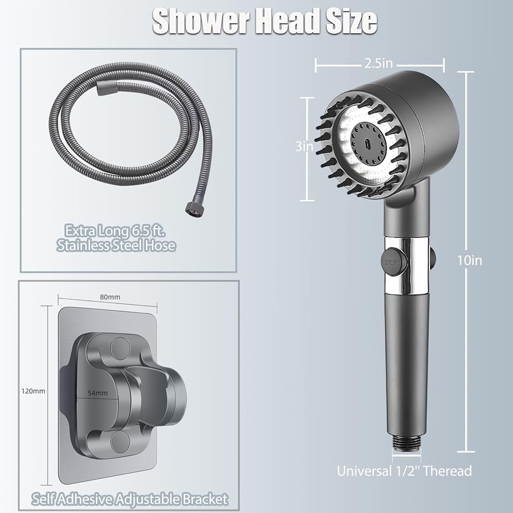 【سهلة التركيب】 لا حاجة إلى استدعاء سباك - تركيب بدون أدوات. الحجم العام خرطوم G1/2 بوصة. دعامة الدش مجهزة برقعة لاصقة جديدة، لا يوجد ثقب على الحائط أو البلاط، هيكل قوي للغاية، قوي ومتين. يناسب رأس الدش معظم أذرع الدش وإكسسوارات الدش القياسية.