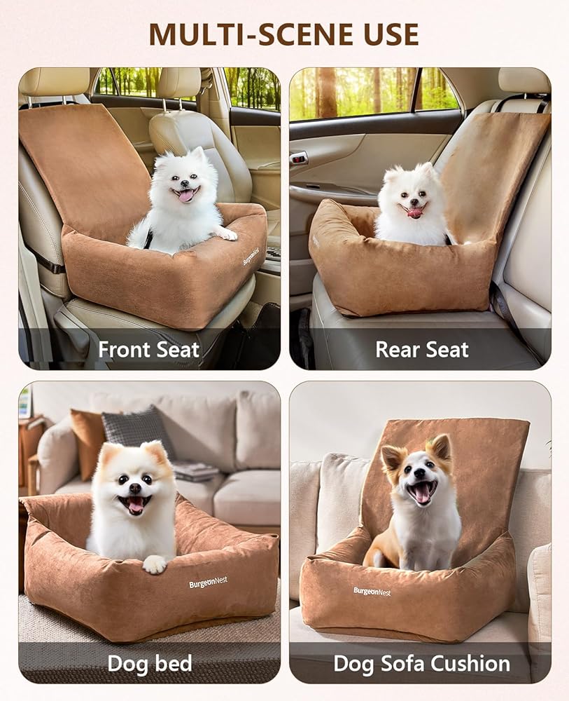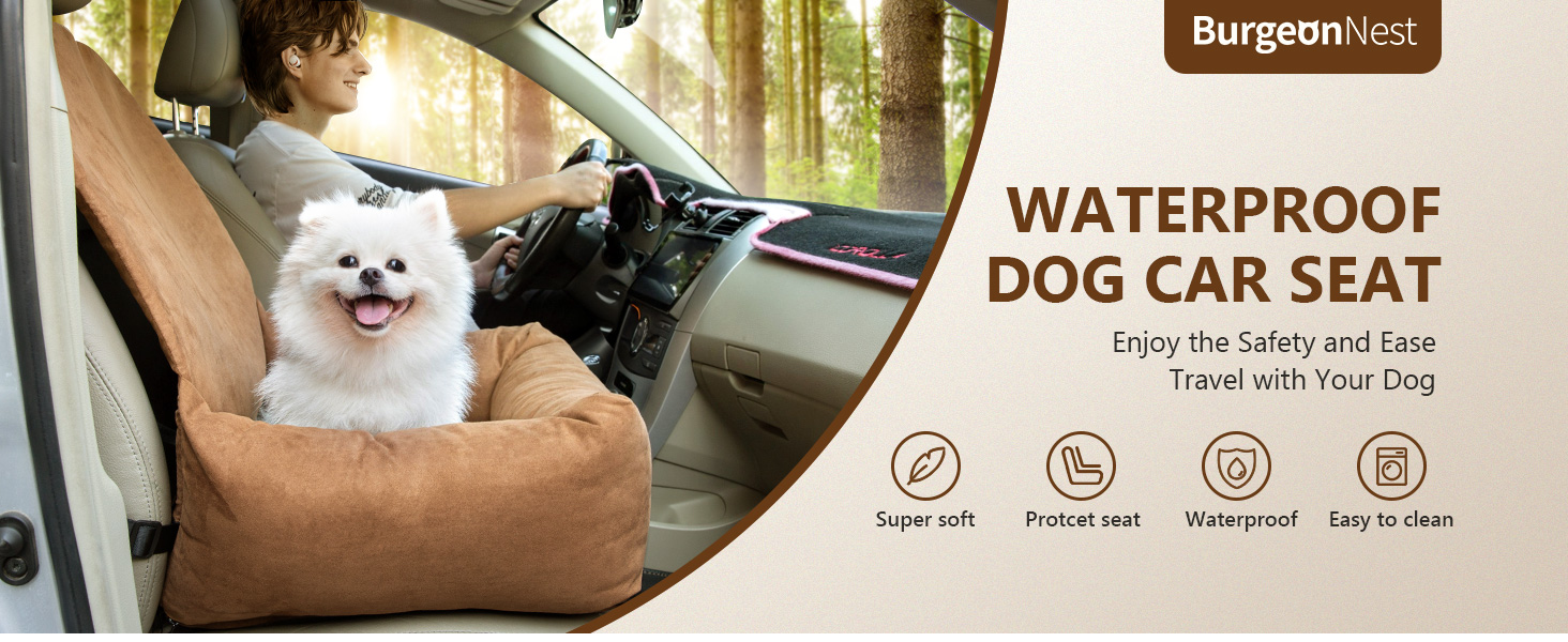 مقعد سيارة للكلاب الصغيرة من بورجيوننيست، مقعد سيارة معزز مقاوم للماء للكلاب، مقعد سيارة للحيوانات الأليفة قابل للغسل مع مقود أمان بمشبك، سرير حامل للسفر بالسيارة للكلاب