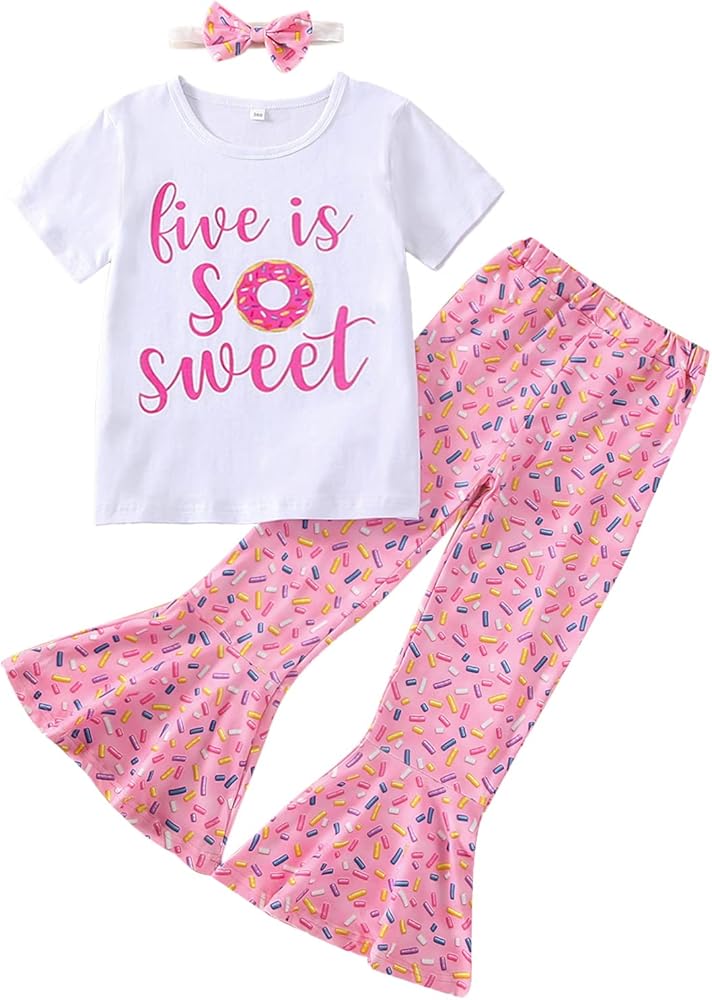 المناسبة: مجموعة تي شيرت قصير للفتيات الصغيرات/بنطلون متوهج، زي عيد ميلاد لفتاة تبلغ من العمر عامين، مثالي لحفلات أعياد الميلاد، وتحطيم الكيك، وحفلات استقبال المولود الجديد، والتصوير الفوتوغرافي، والارتداء اليومي، وغير رسمي، والتجمع العائلي.