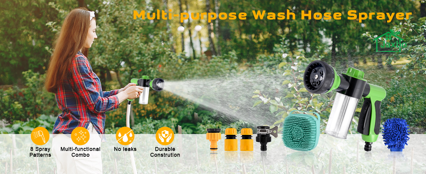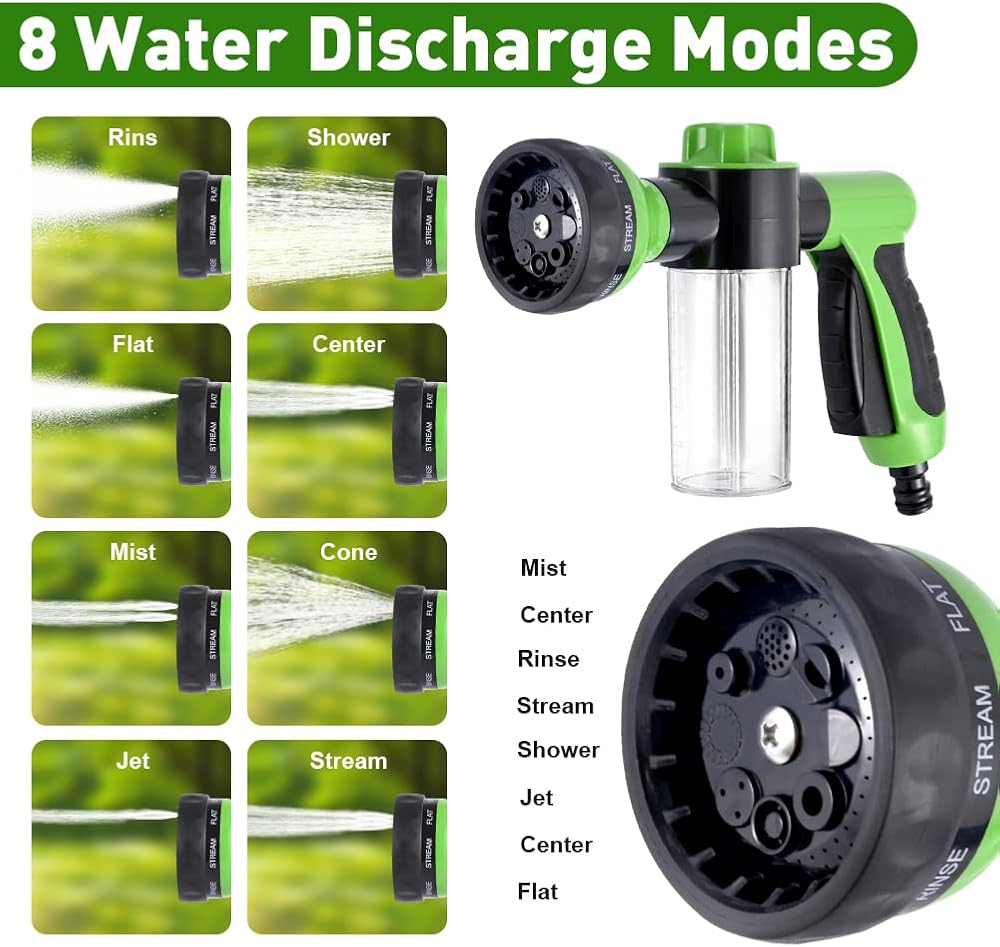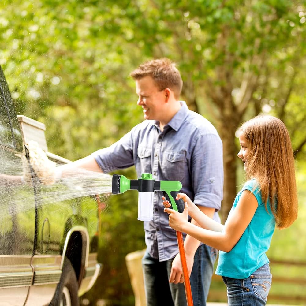 【With Soap Dispenser】This hose sprayer nozzle set is a foam separation design.Can also adjust the amount of foam, just put the detergent into the bottle, adjust the amount of foam by the rotary switch. No longer need to prepare a bucket of foamy water separately when washing.