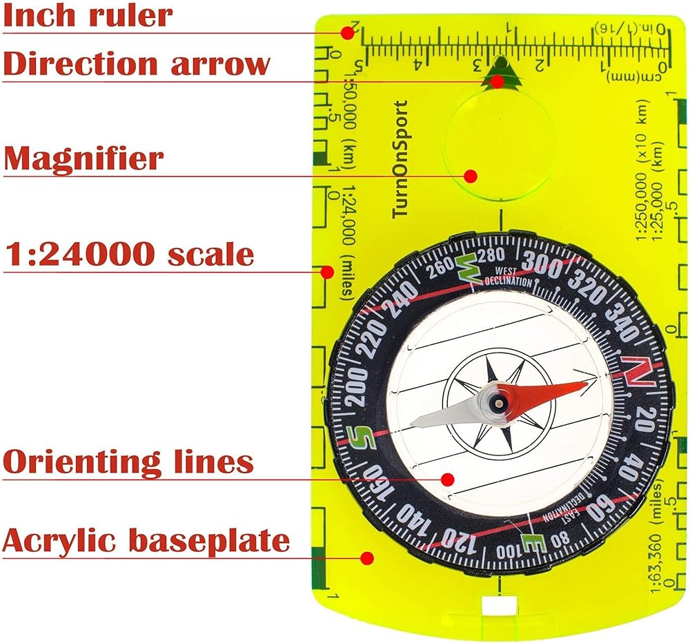 Multiple Functions: This compass has multiple functions, including a magnifying lens for reading maps, a sighting mirror for precision alignment, and a clinometer for measuring angles. It is perfect for camping, hiking, backpacking, and outdoor exploration.