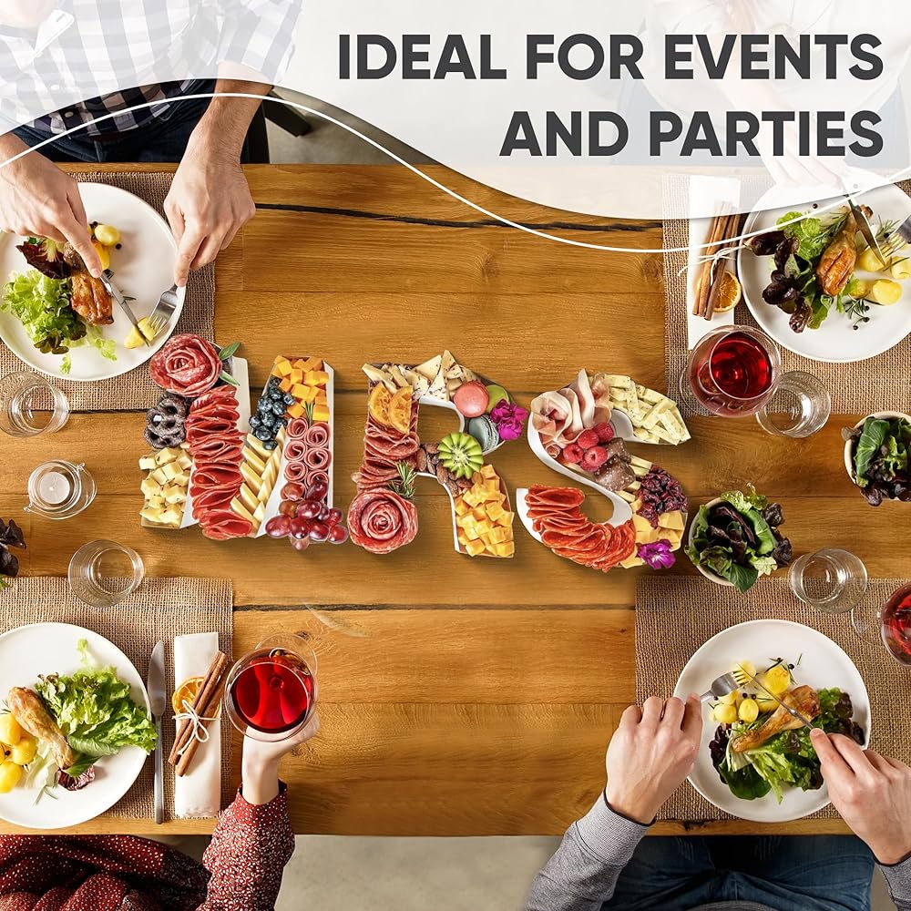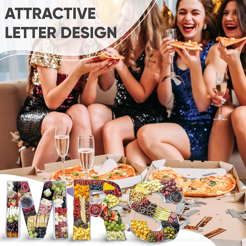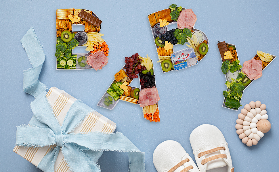 Instructions: Simply line the letters with wax or parchment paper then get creative filling them with your favorite meats, cheese, crackers, spreads, veggies, fruits, or candy.