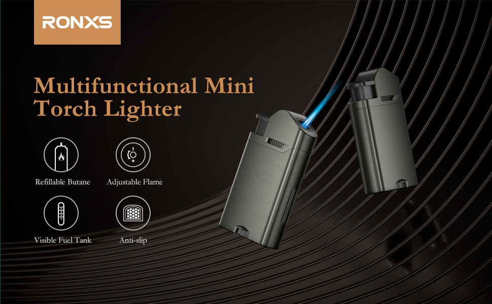 Multipurpose & Portable - Are you fed up with a butane lighter that is too heavy or too big? RONXS mini torch lighters are lightweight and easy to carry (2.48" x 1.37" x 0.5" 1.95oz), suitable for indoor and outdoor activities like igniting fireworks, campfires, and the candle on the birthday cake, etc.