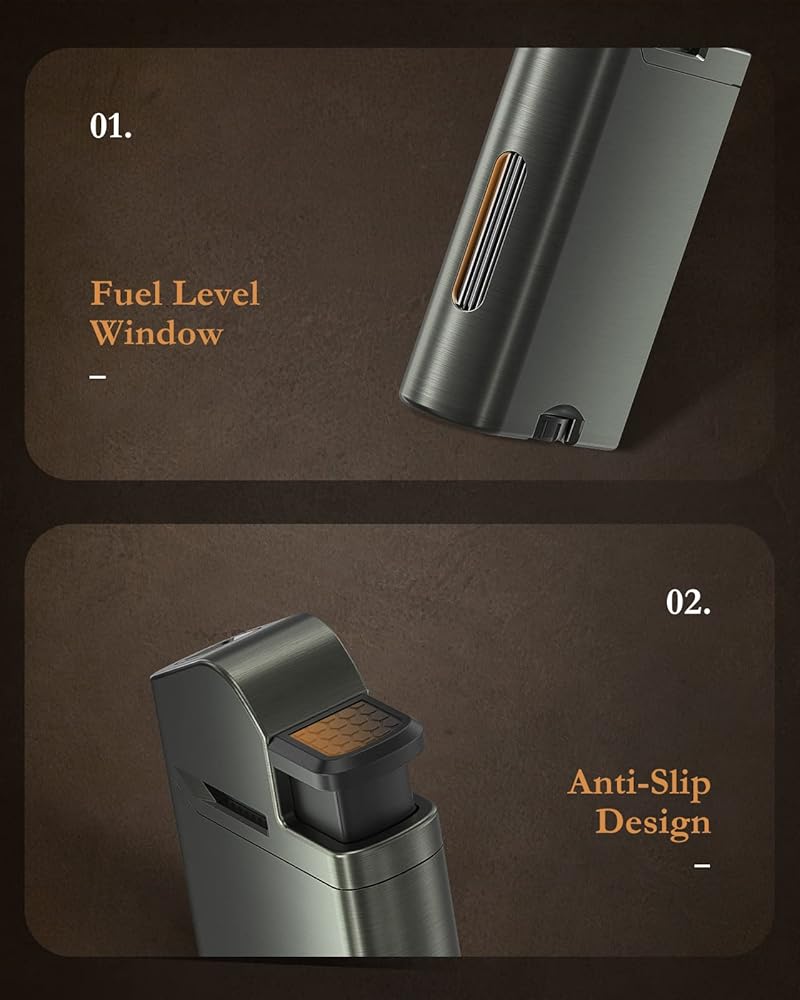 Have you ever found the butane lighter is out of gas when you are about to use it? You can prevent this by reminding yourself to refill the jet lighter in time by checking the window.