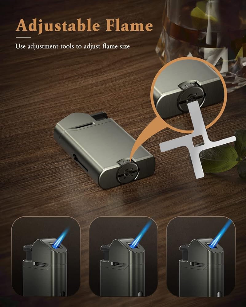 Adjustable Flame Size - Other butane torch lighters may require you to use a screwdriver to adjust, we have thought about making it easier for you to use it. It's more convenient to rotate the knob on the jet lighter to adjust the flame than to find a screwdriver.