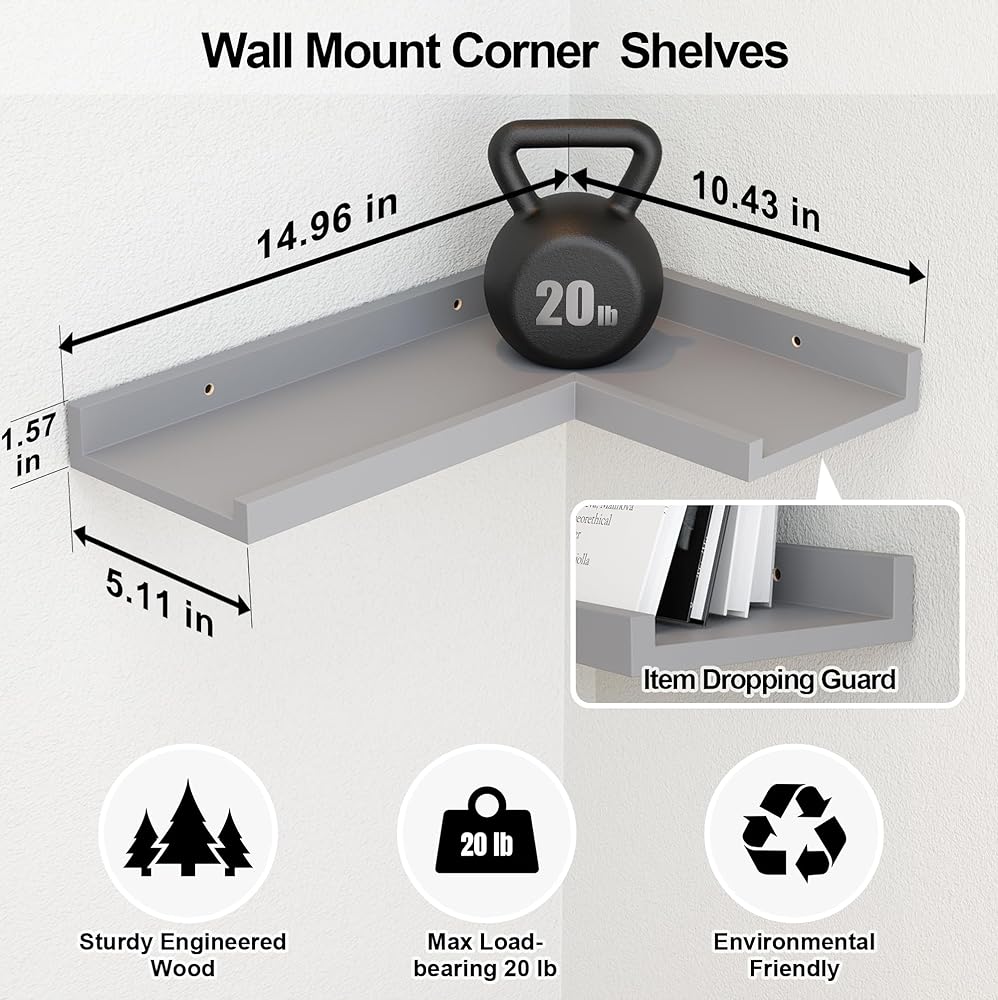 هل سئمت من التعثر في الفوضى؟ تم تصميم أرفف الزاوية العائمة على شكل حرف L خصيصًا لتناسب أي زاوية بسلاسة، مما يوفر حل تخزين مثالي لتنظيم وعرض العناصر المفضلة لديك دون شغل مساحة أرضية قيمة. أضف لمسة أنيقة إلى ديكور منزلك من الآن فصاعدًا!