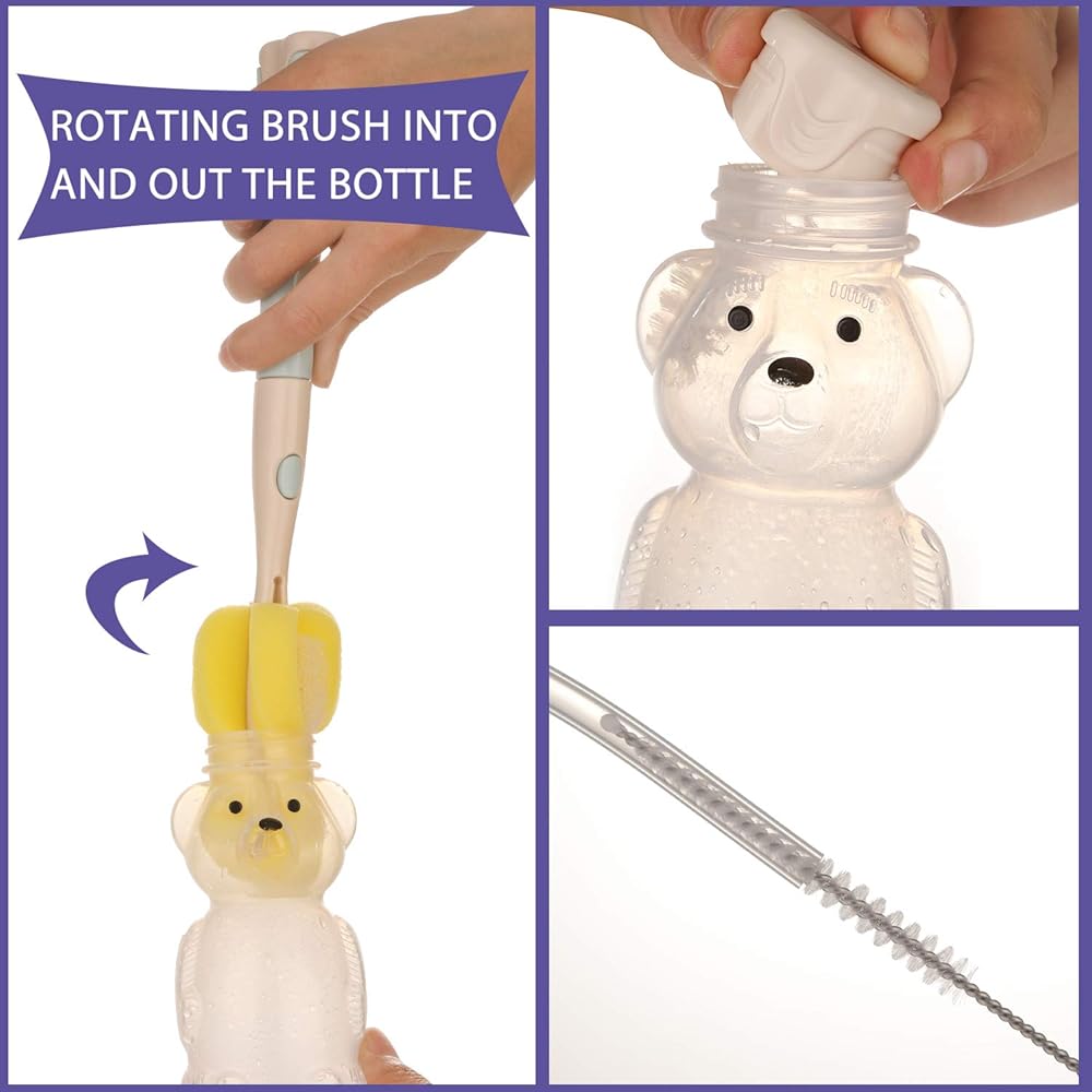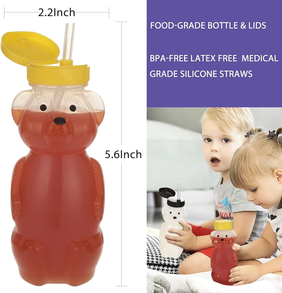 عبوة من كوبين من أكواب هوني بير مع 4 ماصات مرنة وأدوات تنظيف (فرشاتان للمصاصة وفرشاة زجاجة واحدة)، زجاجات علاجية مضادة للانسكاب بسعة 8 أونصة للتدريب على الكلام والتغذية، مقاومة للتسرب وملائمة للطعام وخالية من مادة BPA.