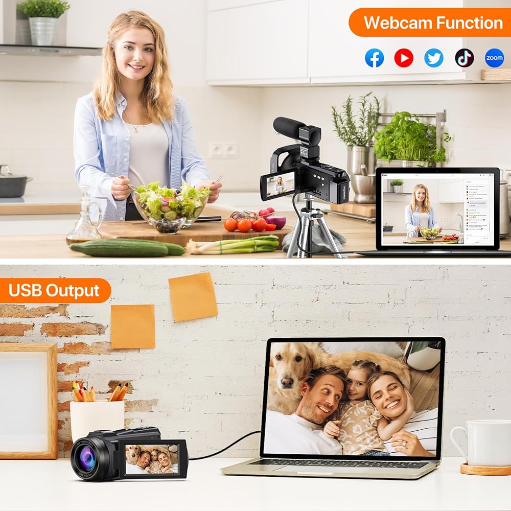 【Multifunctional Camcorder & Lifetime Service】 This video camera support pause function(click “photo”), face detection, continuous shooting, anti-shake, self-timer, time-lapse shooting, slow motion, recording while charging, 4k/5k mode switch, will meet your different needs. HDMI output, Webcam, MSDC, USB 2.0 and up to 256GB SD card, support tripod and LED light (tripod and LED light not included). 1 year warranty and 24 hours online customer service will be supported.