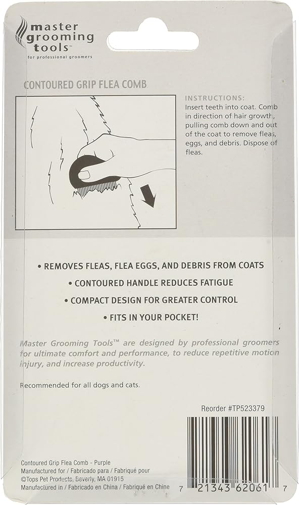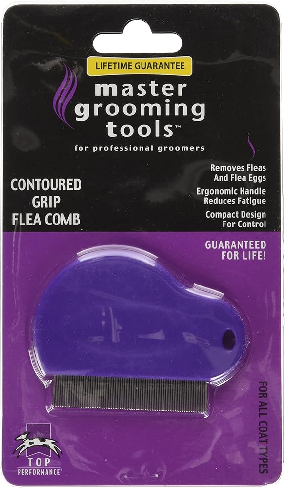 امشاط برغوث ذات قبضة محيطية من ماستر جرومينج تولز - امشاط مريحة لإزالة البراغيث، ارجواني