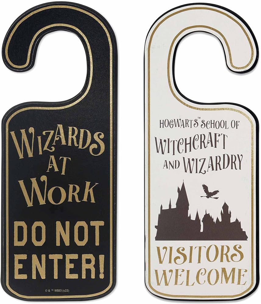 لافتة كلاسيكية ممتعة: أحد جانبي ديكور الباب هذا مكتوب عليه "Wizards at Work - Do Not Enter"، بينما يقرأ الجانب الآخر "Hogwarts School of Witchcraft and Wizardry - مرحبًا بالزوار." سواء كنت في مزاج للتجمع أو تحتاج إلى بعض الوقت لتخفيف الضغط، فإن هذا الديكور الممتع هو ما تفتقده.