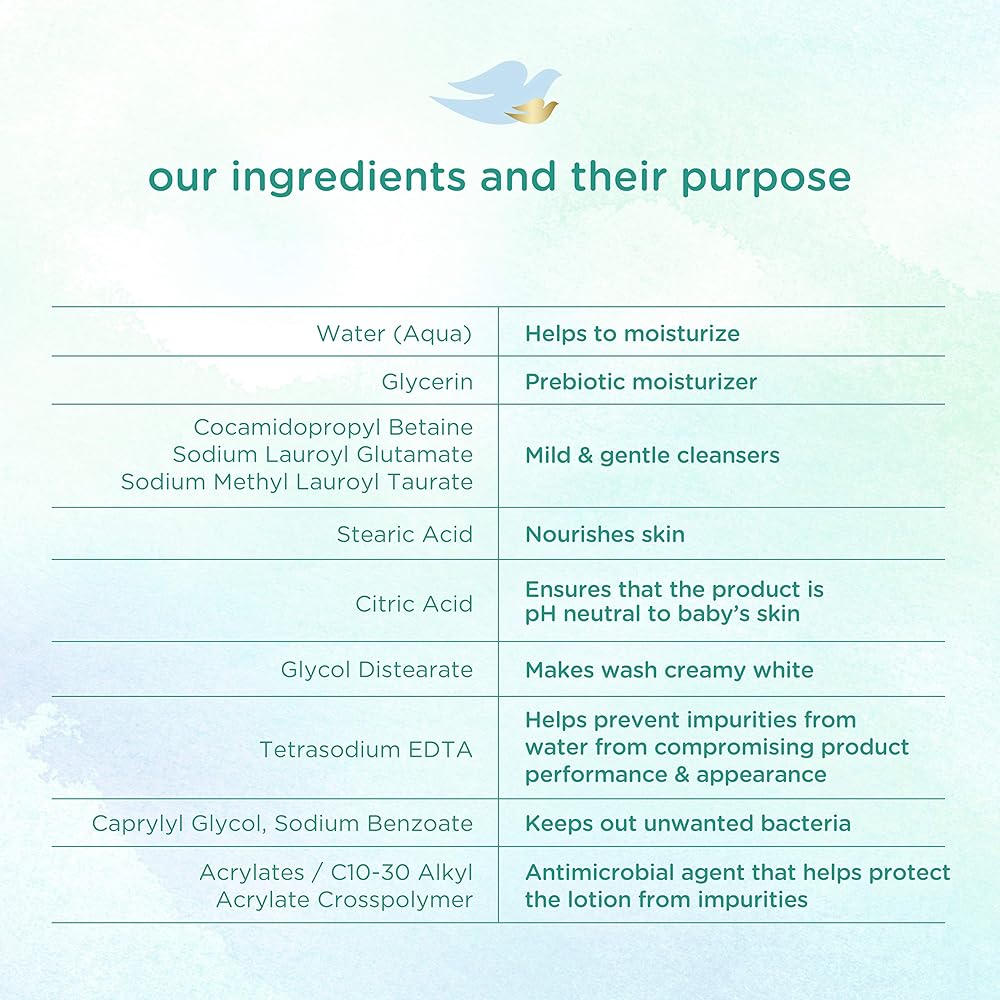 Bathtime with your baby is special, so you're going to want the best baby wash. We know that baby skin is delicate because it's still developing throughout your baby's first year, but did you know that baby skin is actually 30% thinner than ours, making it even more vulnerable? A growing baby's skin barrier is weaker, too, which means it loses moisture up to five times faster than our own. That's why we created new Baby Dove Sensitive Moisture Tip to Toe Wash to help protect your little one's skin. Unlike other baby body washes, our tear-free baby wash goes beyond mild cleansing; it helps replenish essential moisture and nutrients lost by baby's skin during bath time, so your baby's skin is clean, soft, effectively moisturized and delicately scented for hours after bathtime. Ophthalmologist-, dermatologist-, and pediatrician-tested with a tear-free and hypoallergenic formula, this bath wash is just the thing to make your baby's bath time special. The rich, creamy lather creates plenty of bubbles, while helping leave your baby's delicate skin clean, moisturized, and soft, more effectively than ordinary baby soap. This formula for sensitive skin is fragrance-free. Baby Dove Tip to Toe Wash is sold in 13 oz and 20 oz bottles.