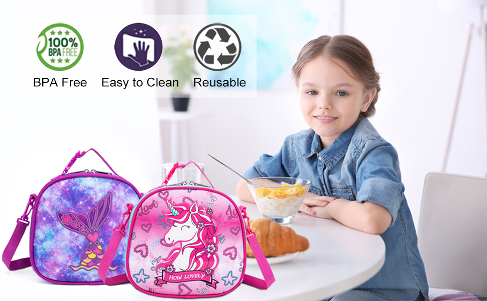 • متعددة الأغراض - الحجم: 9.25 بوصة × 8.5 بوصة × 3.5 بوصة، يمكن لحقيبة الغداء للأطفال أن تحافظ على طعام أطفالك طازجًا مع طبقة الرقائق المعدنية عالية الجودة، وصديقة للبيئة، وخالية من البيسفينول. مناسبة للأطفال البنات والأولاد من سن 5 سنوات فما فوق. يمكن استخدامها أيضًا كحقيبة كروس في الحياة اليومية.