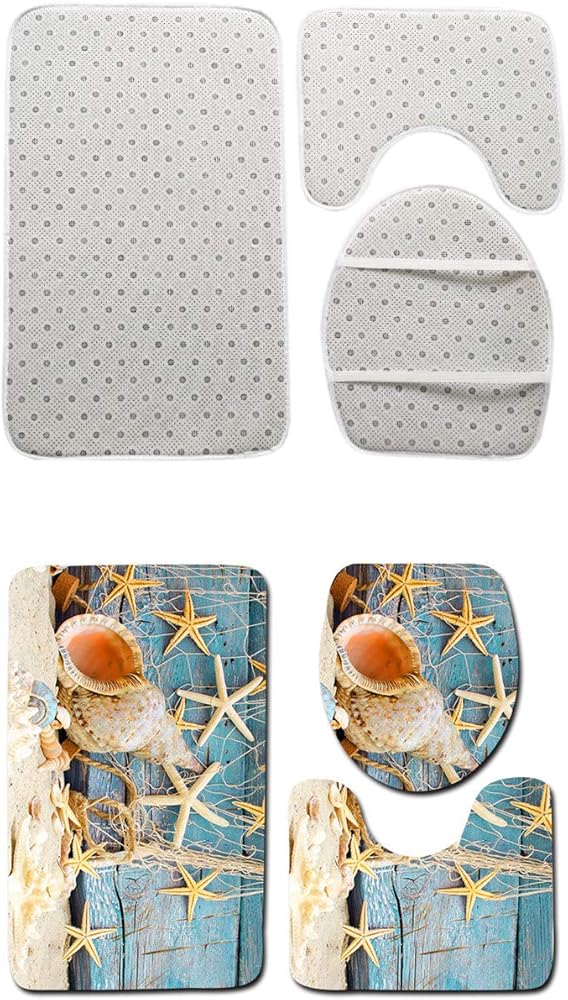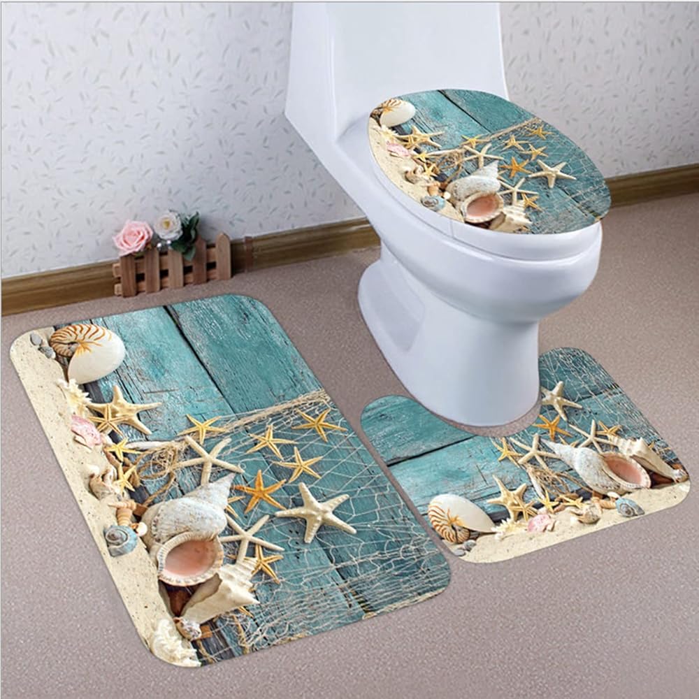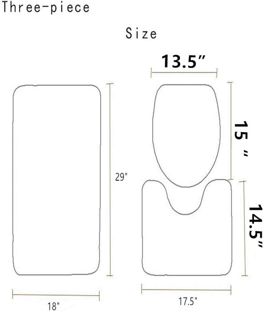 العبوة: معبأة مع مجموعة من 3 قطع تتضمن سجادة واحدة بقاعدة وغطاء مرحاض وغطاء واحد للحمام و1 سجادة حمام يمكن أن تكون مناسبة لمناسبات الباب والممر والصالة وغرفة الجلوس وغرفة النوم والمطبخ والنافذة العائمة وتحت الكرسي.